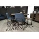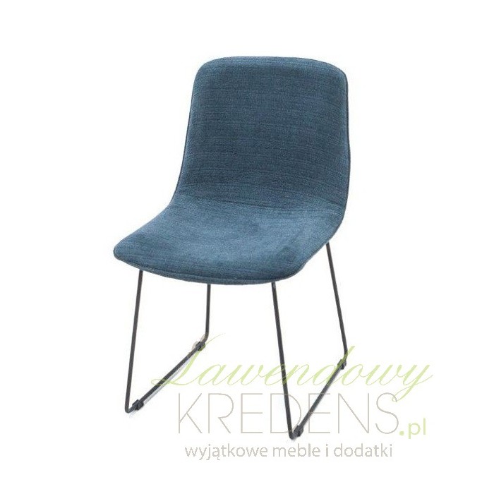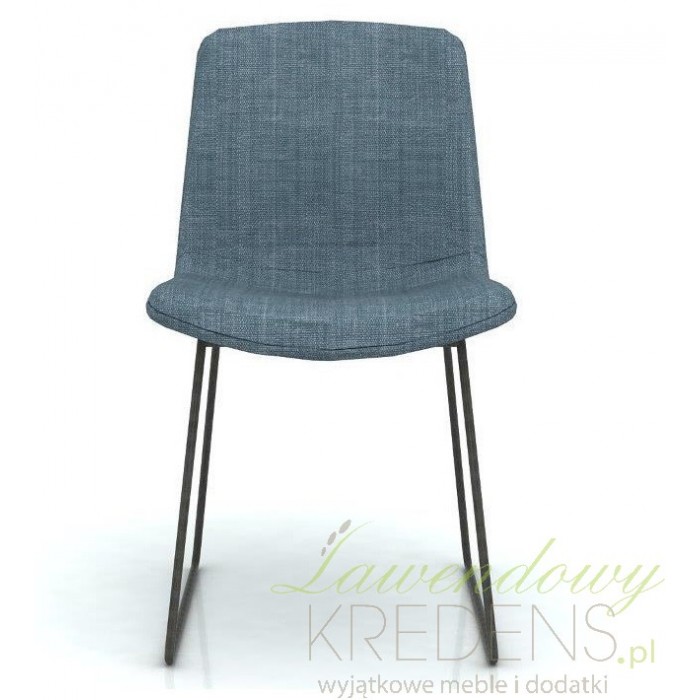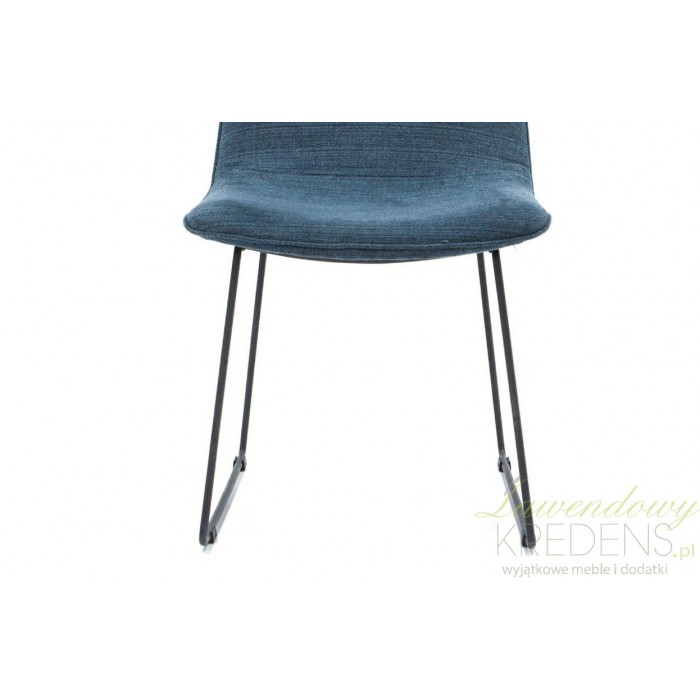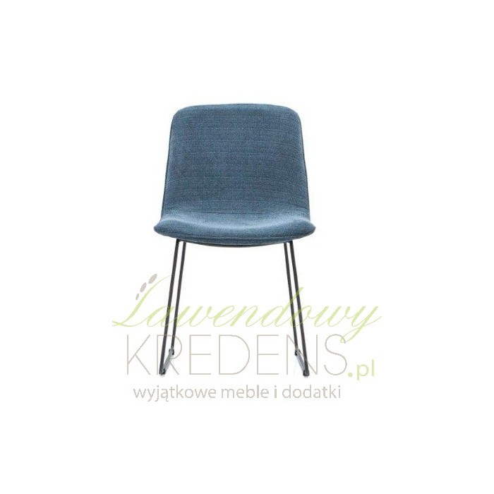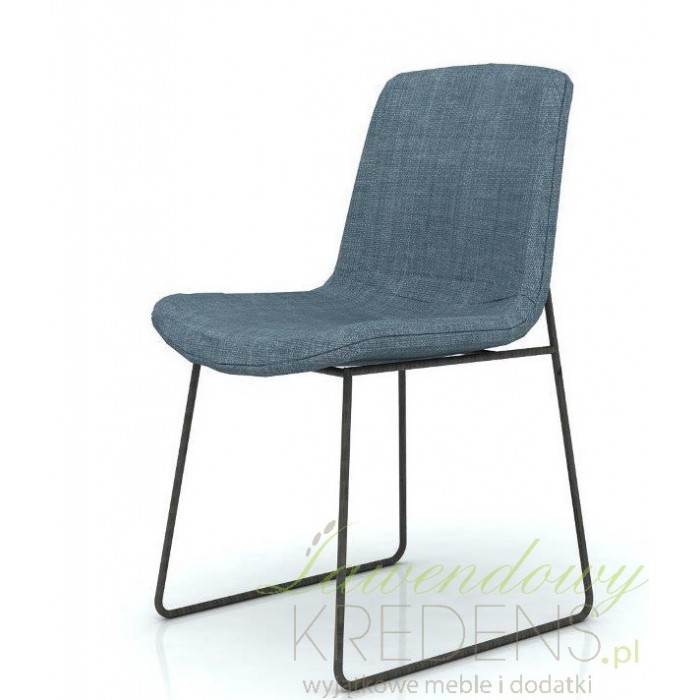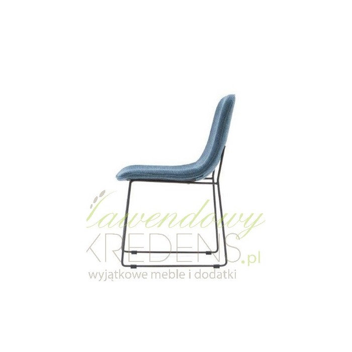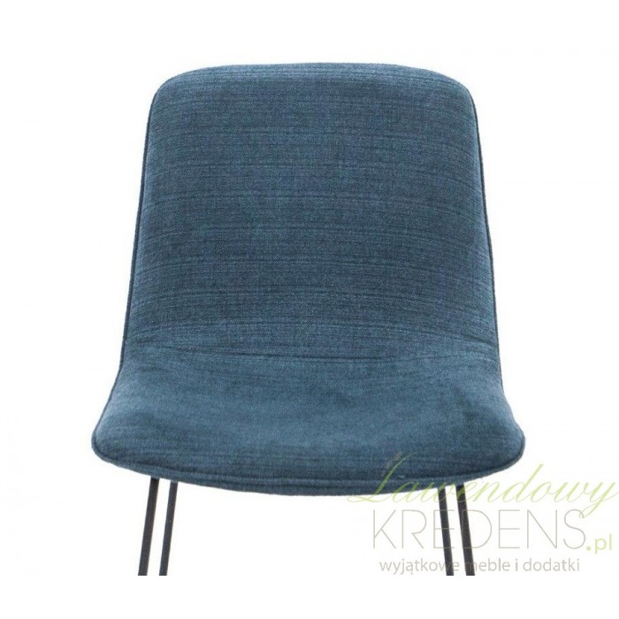 Krzesło loftowe z kolekcji Flow od marki Livin Hill ma oparcie i siedzisko pokryte gładką tapicerką w kolorze chłodnego błękitu.