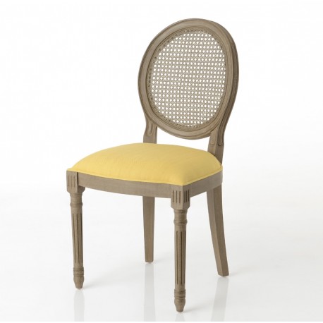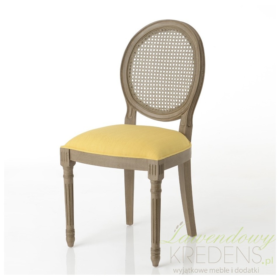 Krzesła w stylu prowansalskim są niezbędnym elementem każdej, klasycznej przestrzeni, ponieważ nie tylko zapewniają wygodne miejsce do siedzenia, ale także nadają indywidualny styl każdemu pomieszczeniu. Krzesło Medalion doskonale łączy komfort z prowansalskimi akcentami, takimi jak rattanowe oparcie i proste, delikatnie frezowane nogi drewniane. Krzesło prowansalskie jest tapicerowane tkaniną w łagodnym, żółtym kolorze.