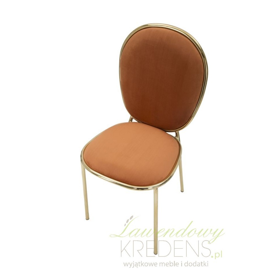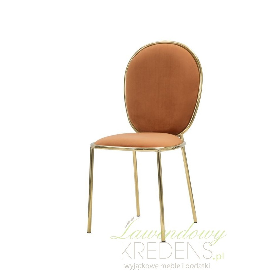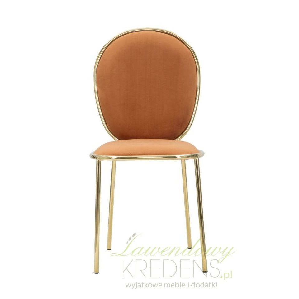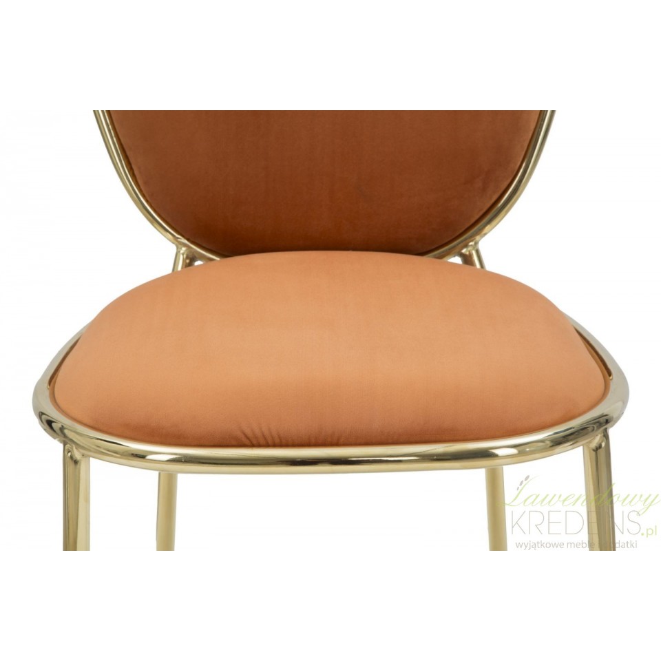 Uważamy, że najprostsze rozwiązania są najlepsze, co wcale nie oznacza, że są mniej stylowe. Jeśli zastanawiasz się jak połączyć prostotę z chęcią zaaranżowania stylowego wnętrza to wybierz krzesła w stylu glamour tapicerowane pomarańczową, przyjemną w dotyku tkaniną. Pomarańczowe krzesła Glm zapewnią wnętrzom kuchni i jadalni mnóstwo ciepła, jednocześnie dbając o harmonię i poczucie ładu. Krzesła, które prezentujemy mają metalową konstrukcję w kolorze połyskującego złota, co dodatkowo dodaje im szyku.
