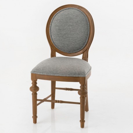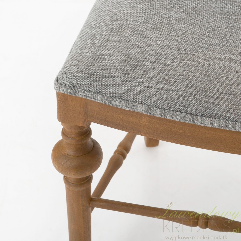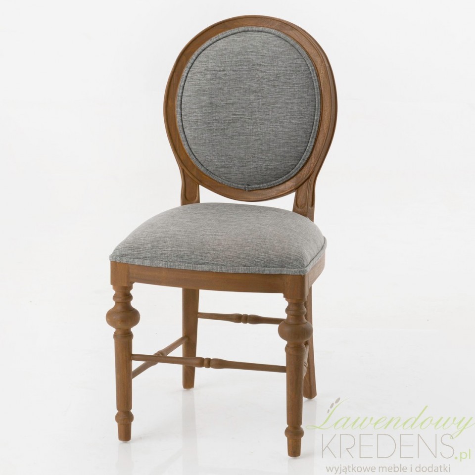 Szare krzesło w stylu prowansalskim ma elegancki kształt, dzięki któremu świetnie prezentuje się w salonowej przestrzeni. Dzięki wytrzymałej konstrukcji z ciemnego drewna mahoniowego to krzesło pasuje do niemal każdej jadalni, domowego gabinetu, a nawet jako krzesło do wyrafinowanej restauracji hotelowej. Nogi są wykończone zgrabnymi rzeźbieniami i wzmocnione dodatkowymi pałąkami drewnianymi. Meble prowansalskie docenią Ci, którzy preferują tradycyjne rozwiązania.