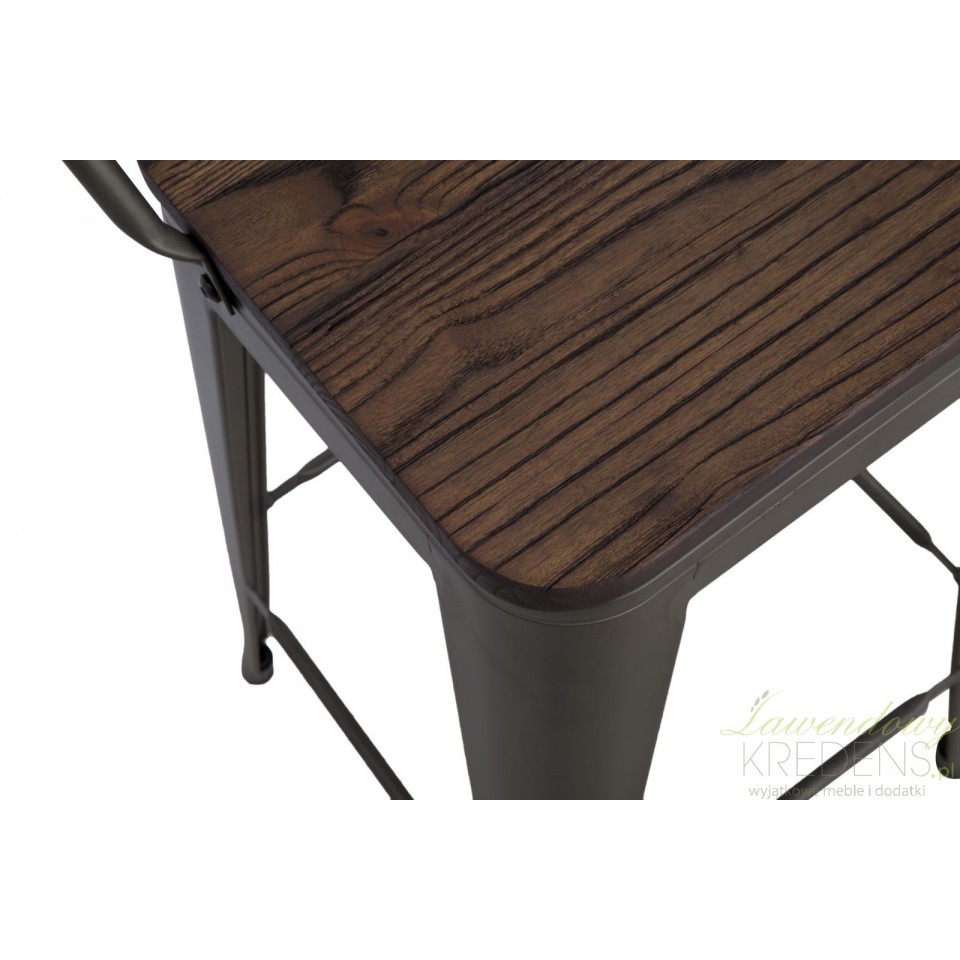 Meble w stylu industrialnym może nie zapewnią Ci estetycznych doznań, ale na pewno sprawią, że będziesz mógł urządzić niepowtarzalne wnętrze. Jednym z nich jest krzesło barowe wykonane z metalu i drewna wiązu. Siedzisko na wysokości 77 centymetrów doskonale pasuje do wysokiej wyspy. Aby zwiększyć komfort krzesła w stylu industrialnym - umieść na siedzisku poduszkę na krzesło w jednolitym kolorze.