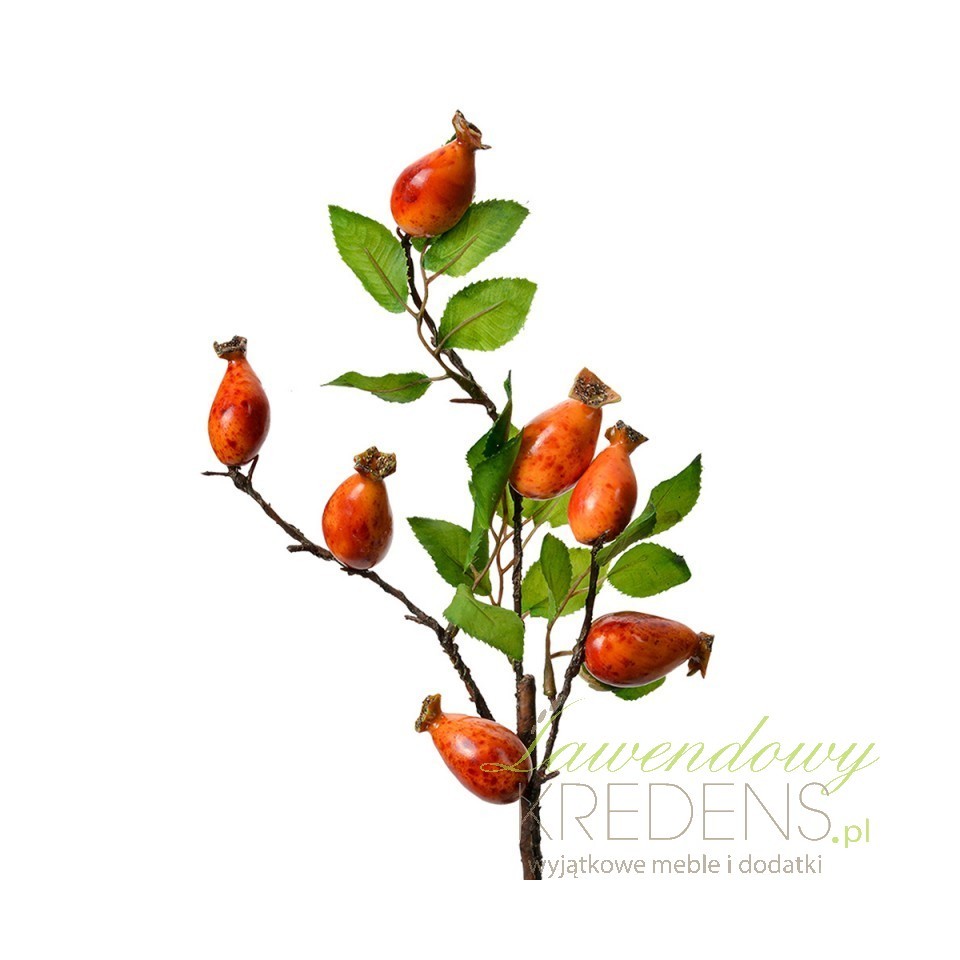 Jeśli chcesz dodać wnętrzu lub witrynie akcent natury, ale nie masz warunków na świeże rośliny (ciemny korytarz, ciepło od kaloryfera, brak czasu), ta sztuczna gałązka dzikiej róży 50 cm rozwiązuje problem od ręki. Owoce w ciepłym, rudo-czerwonym tonie i zielone liście budują wrażenie „zebrane z ogrodu”, bez ryzyka więdnięcia czy osypywania.Dekoracja rustykalna i cottage: postarzany klimat, rzemieślniczy detal