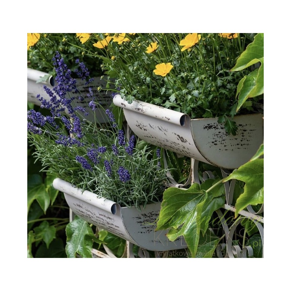 Garden Kwietnik Ścienny to metalowy kwietnik Belldeco, którego powierzchnia jest celowo postarzana poprzez przetarcia i odpryski farby oraz imitację rdzawych nalotów. Kwietnik świetnie sprawdzi się zarówno na zewnętrzej ścianie domu jak i we wnętrzu.