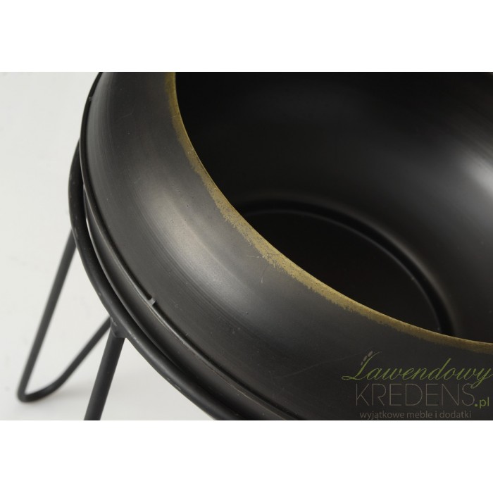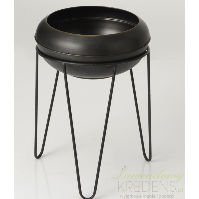 Kwietnik metalowy ma śliczny czarny kolor i okrągły kształt. Czarny kwietnik stoi na długich stabilnych nogach i wygląda bardzo elegancko. Metalowe kwietniki to cudowna dekoracja ogrodu i domu.