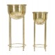 Metalowe kwietniki stojące wykonane z metalu w kolorze złotym. Nowoczesny design powoduje, że złote kwietniki doskonale wyglądają we wnętrzach loftowych, glamour oraz industrialnych. To doskonały wybór jeżeli myślisz o niebanalnej aranżacji ogrodu, tarasu lub balkonu. Za sprawą nieskomplikowanej konstrukcji kwietniki od Mauro Ferretti są funkcjonalne i świetnie łączą się z pozostałymi elementami wyposażenia wnętrza.