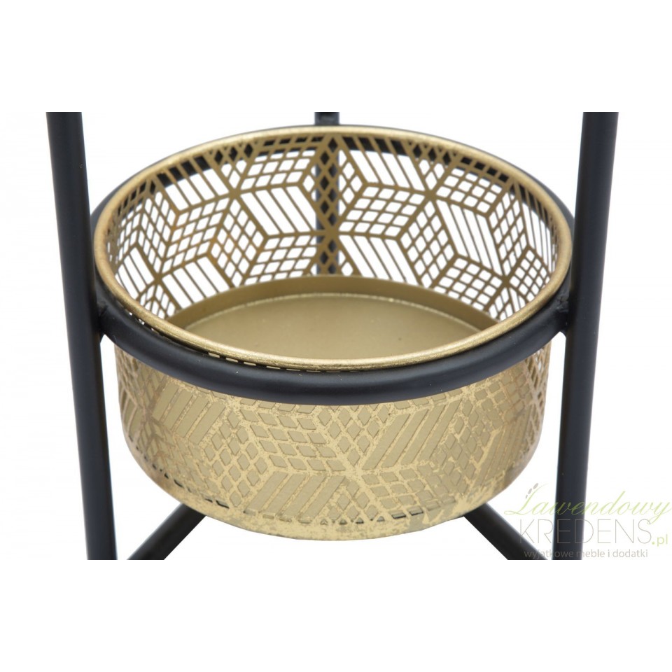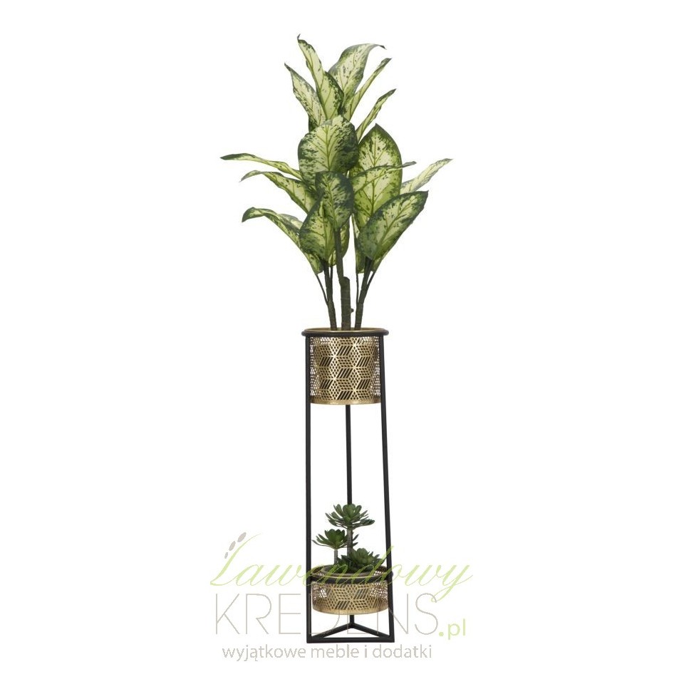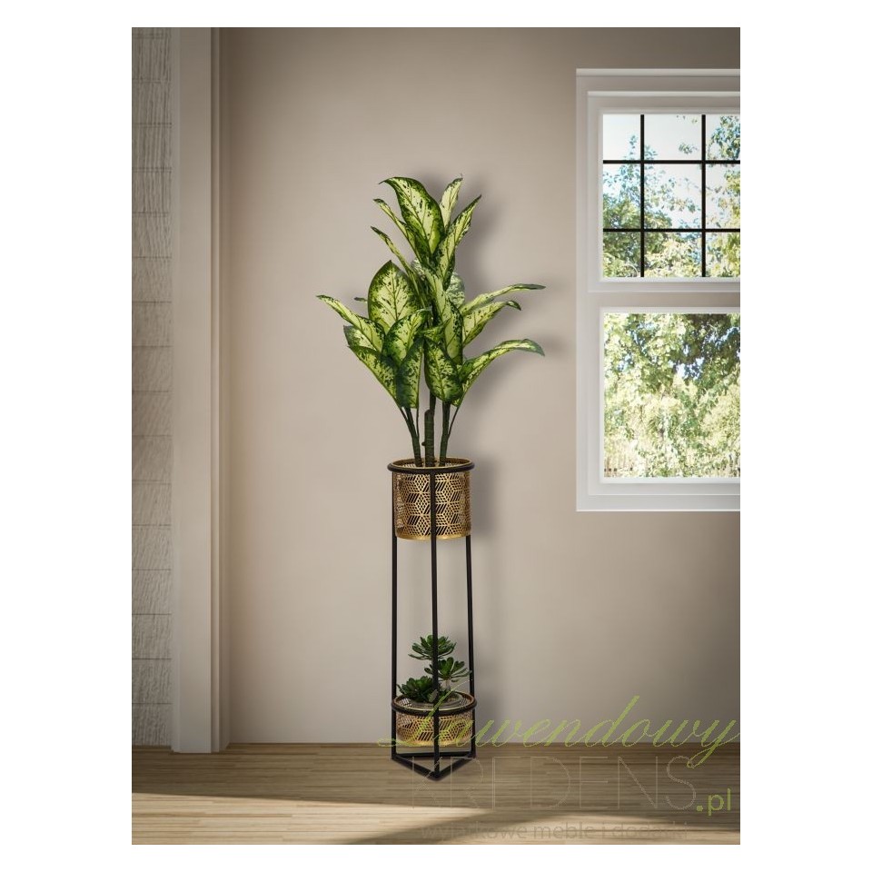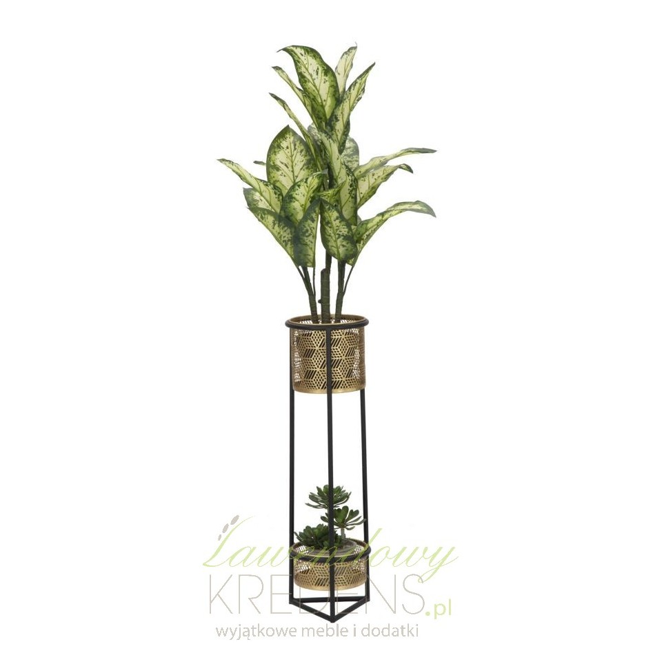 Czarno-złoty kwietnik wykonany w całości z metalu, z którym uda Ci się zrealizować nawet najbardziej szalony pomysł na aranżację kwiatów w salonie lub na tarasie.