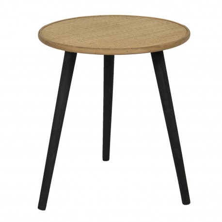 Stolik nocny z plecionym blatem prezentuje się lekko i naturalnie, a to wszystko za sprawą stonowanej kolorystyki i minimalistycznej formy.