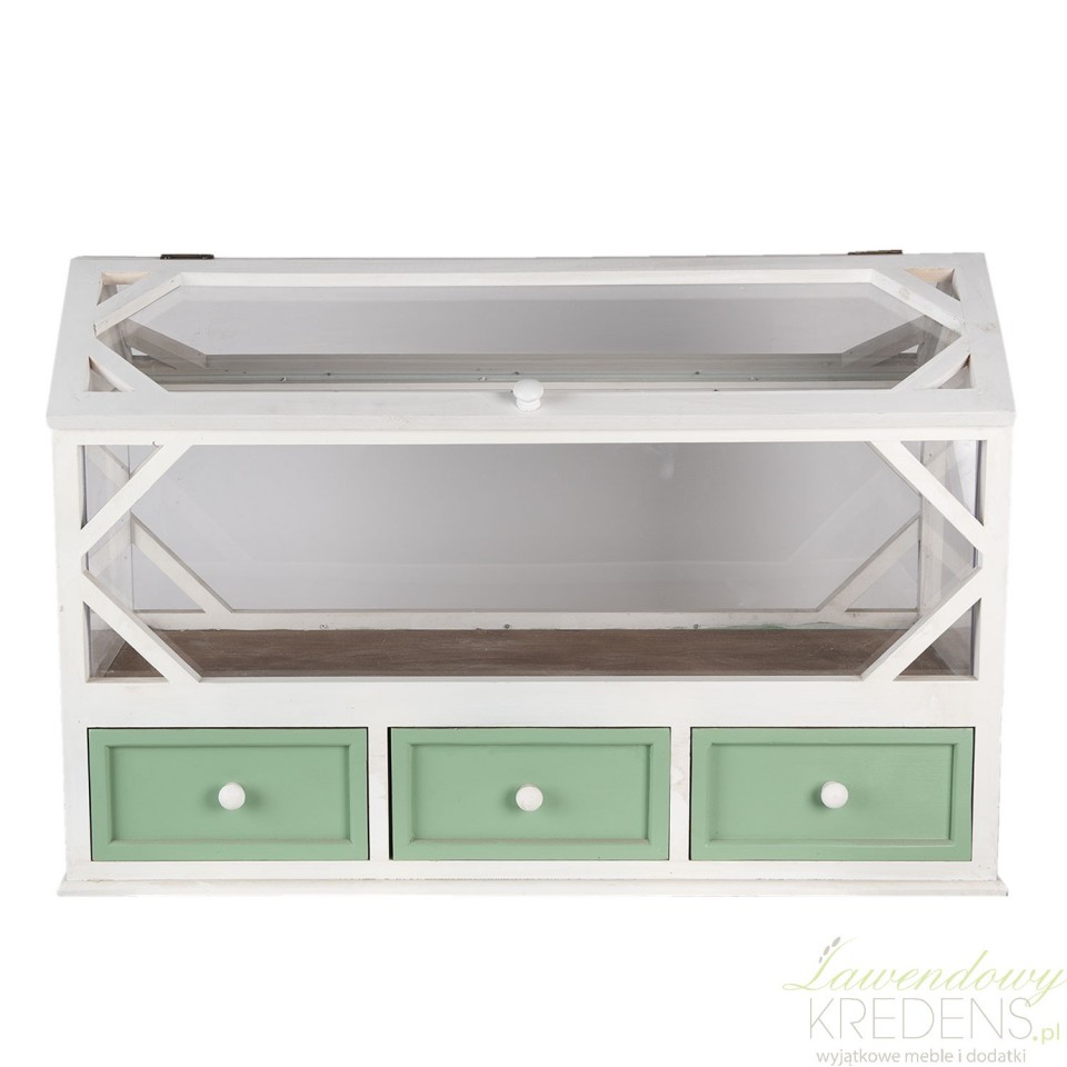 Wcale nie musisz mieć własnego ogrodu aby uprawiać ulubione zioła sezonowe i kwiaty. Pomoże Ci w tym podłużna, drewniana szklarenka ozdobna malowana na biało i wyposażona w trzy zielone szufladki. Prowansalskie dekoracje, a w tym akcesoria ogrodowe takie jak doniczki i ozdobne szklarenki sprawią, że widok świeżych roślin będzie cieszył Cię przez cały rok, nie tylko latem! Dodatki do pokoju mające wiele możliwości zastosowań zostaną z Tobą na lata, służąc domowi i jego mieszkańcom.