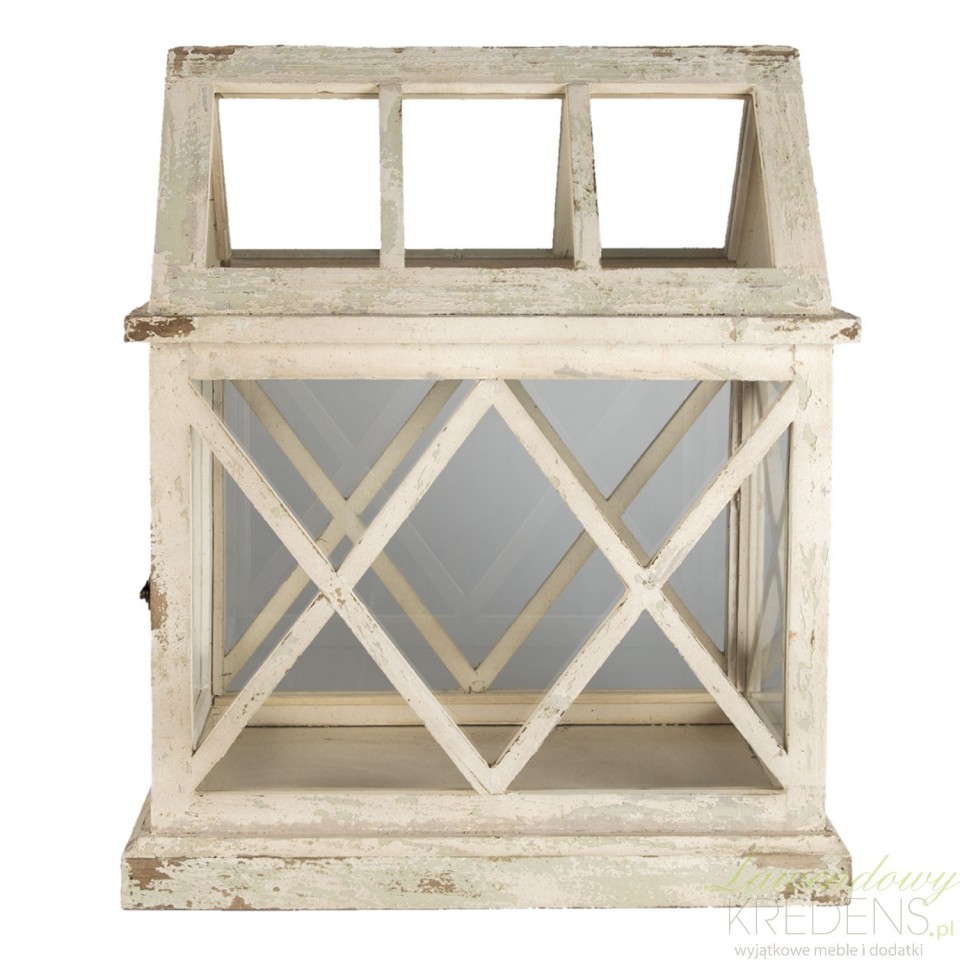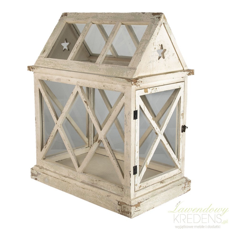 Kiedy w Twoim domu zagoszczą romantyczne dodatki w stylu prowansalskim, od razu poczujesz się lepiej. Jednym z nich jest szklarenka ozdobna w stylu prowansalskim od marki Clayre & Eef. Ta efektowna bryła o prostokątnej podstawie jest przeszklona, skonstruowana z drewnianych i metalowych elementów. Postarzana szklarenka przypomina wersję dekoracyjnych lampionów z dawnych czasów, a dzięki pojemnemu wnętrzu może służyć jako miejsce na dojrzewające sukulenty, elektryczne lampki lub świece, jak również być wolnostojącą dekoracją podczas ceremonii ślubnych lub przyjęć w ogrodzie. Właśnie takie dodatki do pokoju cenią nasi klienci!
