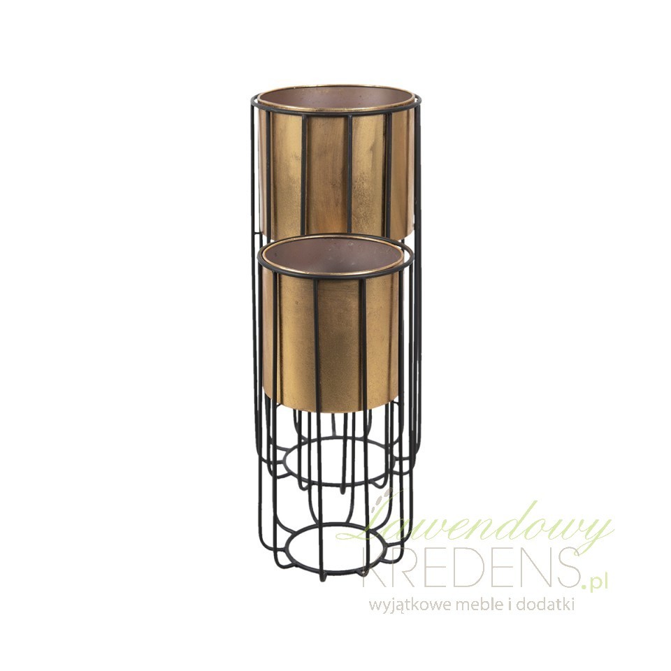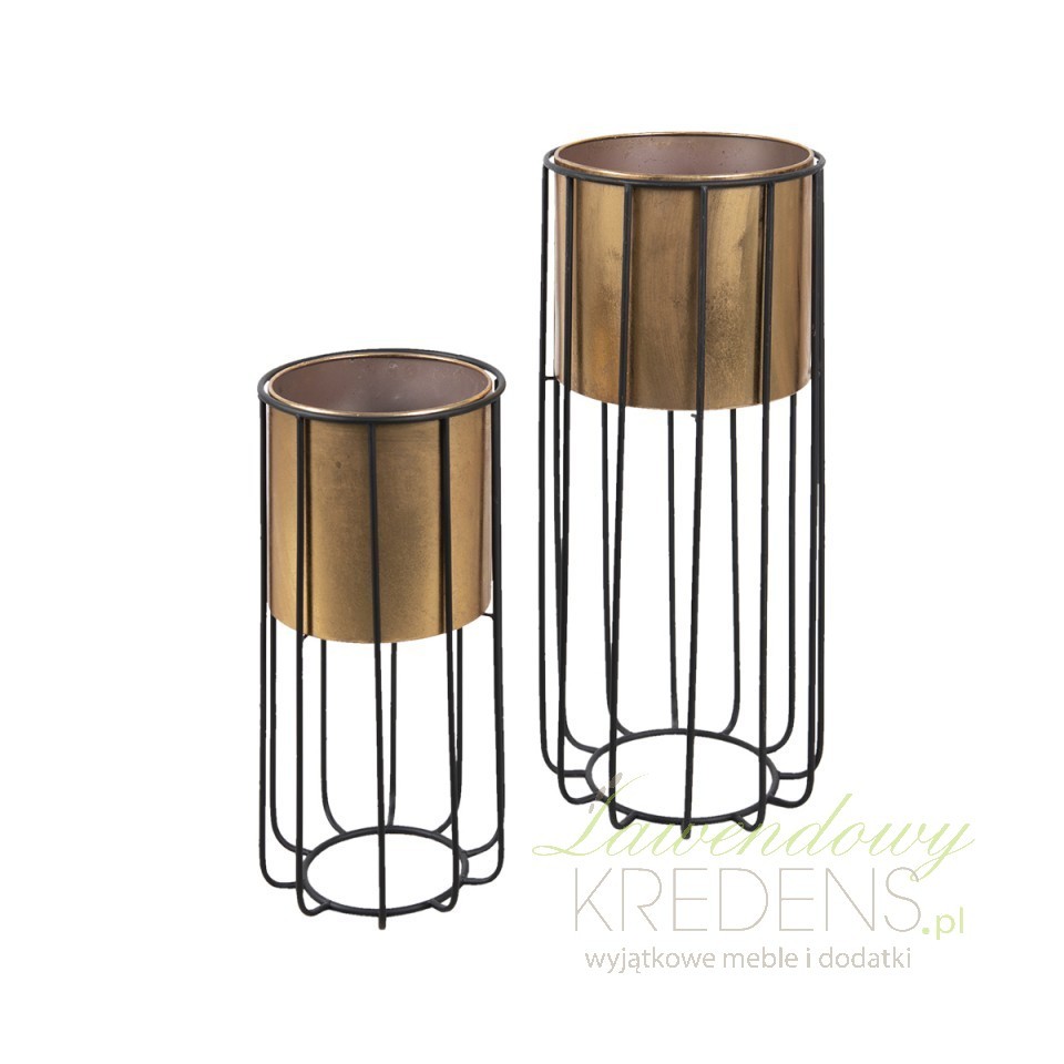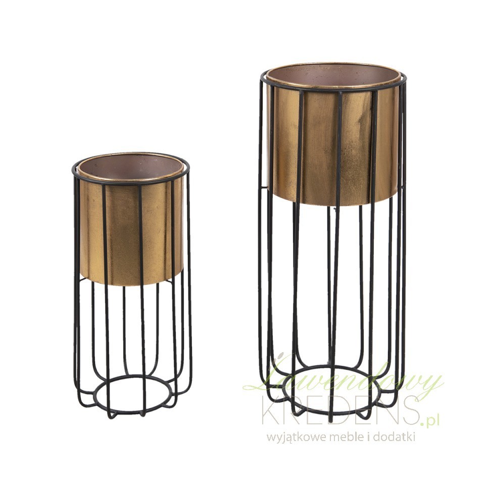 Zgrabne, metalowe kwietniki okrągłe Clayre & Eef z solidnymi podstawami i donicami w kolorze mosiądzu zostały dopracowane w najmniejszym detalu.