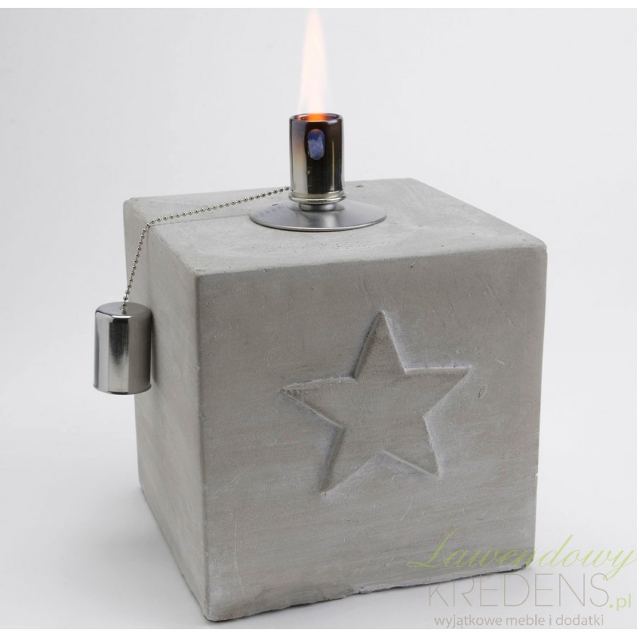 Stylowe dodatki, poza tym, że pięknie wyglądają mogą mieć mnóstwo innych funkcji. Lampa oliwna wykonana z cementu i zdobiona gwiazdą pięknie świeci i podgrzewa nawet najchłodniejszą atmosferę. Nie zwlekaj by włączyć ją do wystroju swojego wnętrza lub ogrodu. Lampa oliwna jest masywna i solidna.