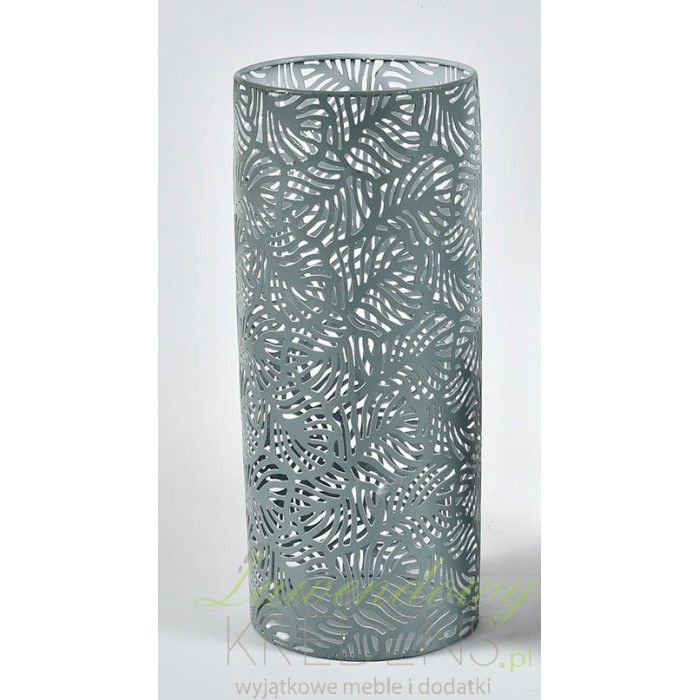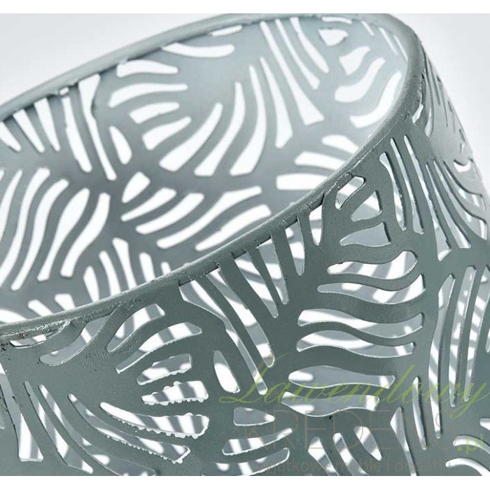 Duży lampion Belldeco pochodzący z linii Delia Liście. Ażurowa konstrukcja lampionu została wykonana z metalu w chłodnym odcieniu. Lampion ma kształt tuby i z powodzeniem może zastąpić inne źródła światła jak lampy podłogowe i lampki nocne. W środku lampionu zmieści się duża świeca oraz świeczki typu tealighty.