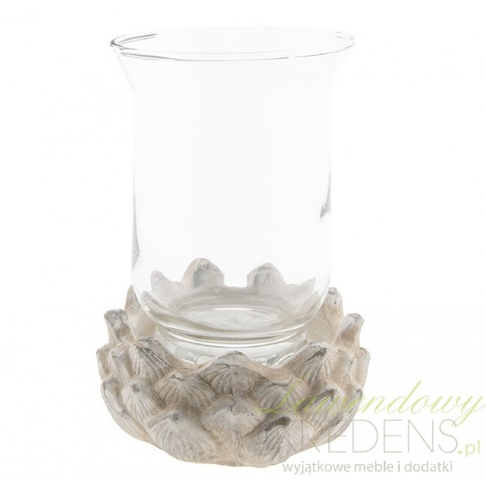 Lampion prowansalski pełen magii, wykonany z grubego szkła i terakoty. Uroku dodaje mu podstawka w kształcie przypominającym kwiat karczocha. Wysokie naczynie uchroni płomień świecy przed zgaszeniem i cudownie rozproszy światło. Lampion w stylu prowansalskim na tealight znajdziesz w naszym sklepie również w innych, bardzo ciekawych formach. Zamów ulubione dekoracje prowansalskie już teraz!