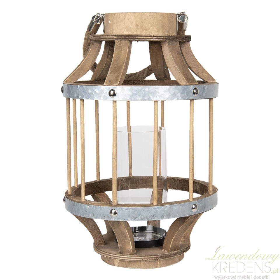 Lampion ozdobny od Clayre&Eef o wysokości 35 centymetrów i średnicy 22 centymetry. Wykonany z wysokiej jakości drewna, szkła i metalu. Znakomicie wygląda w aranżacjach skandynawskich i prowansalskich. Konstrukcja lampionu wykonana została z drewnianych szczebelków połączonych ze sobą za pomocą metalowych pierścieni. Do górnej krawędzi zamocowano brązowy uchwyt ze sznura. Lampiony ozdobne od Clayre&Eef dodadzą nutki kolonialnego stylu w każdym wnętrzu.