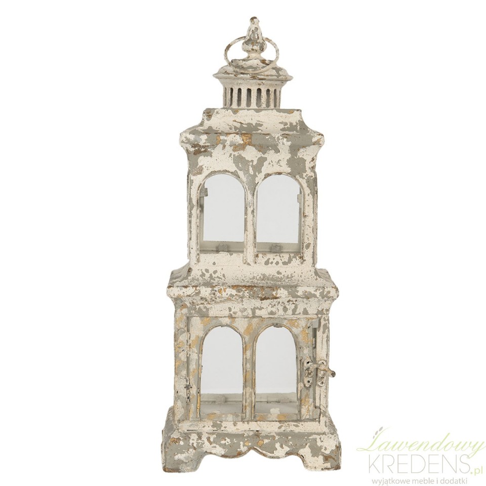 Piękny lampion latarnia w stylu prowansalskim Clayre & Eef – cechuje go bardzo wysoka jakość wykonania ze szkła i metalu.