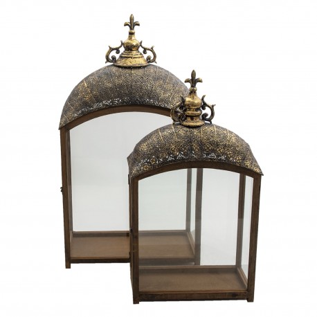 Duże lampiony metalowe antyczny mosiądz wykonane zostały z połączenia szkła i postarzanej konstrukcji metalowej, dzięki czemu można je wykorzystać na wiele sposobów.