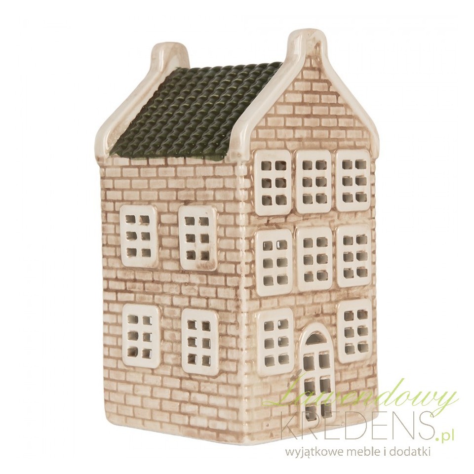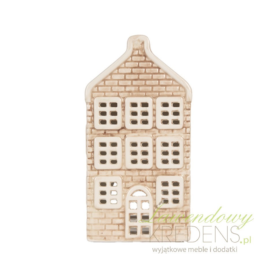 Ceramiczny domek na tealight K Clayre & Eef w beżowym kolorze to uroczy lampion, który rozświetli wnętrze miękkim blaskiem świecy. Jego kształt przywodzi na myśl ciepło rodzinnego domu, a subtelne detale nadają aranżacjom poetycki charakter. Idealny do tworzenia przytulnej atmosfery.