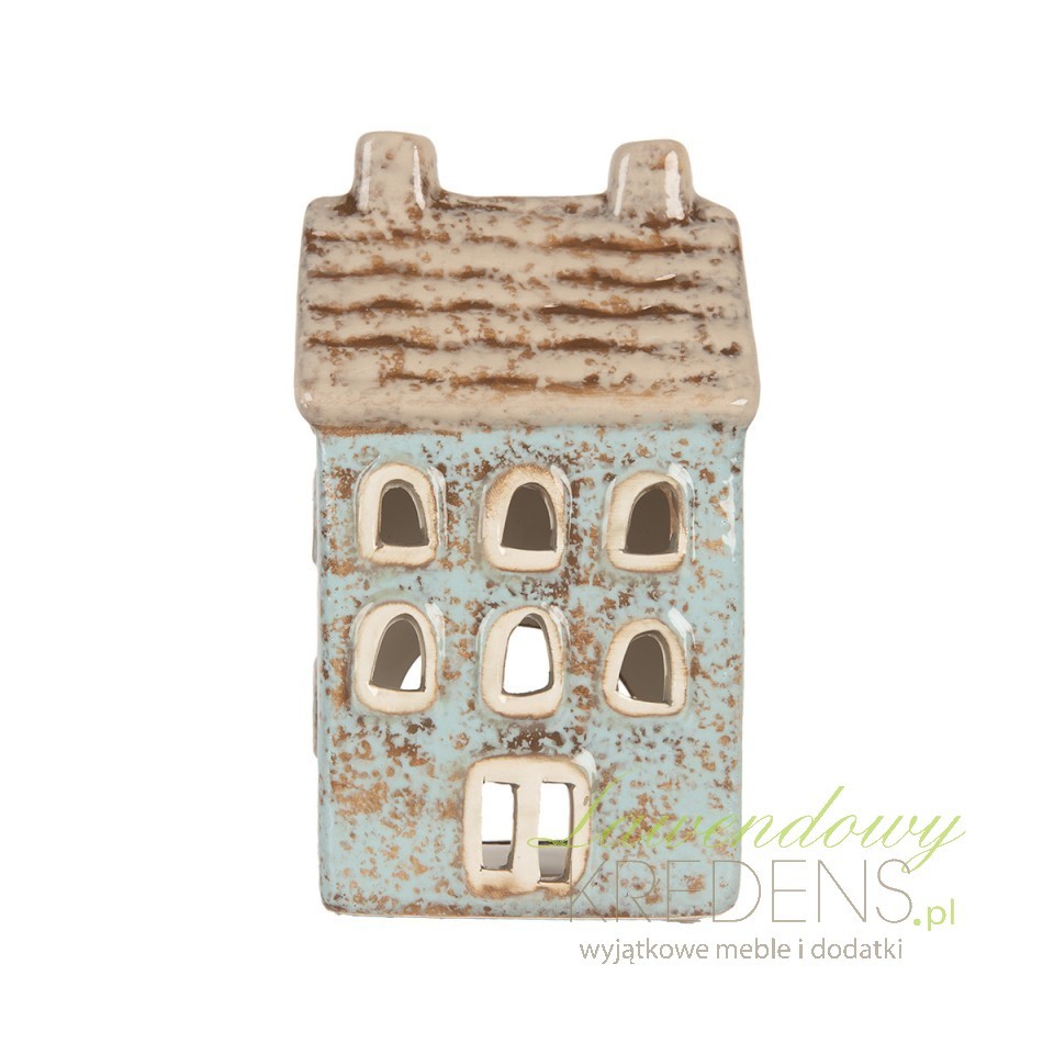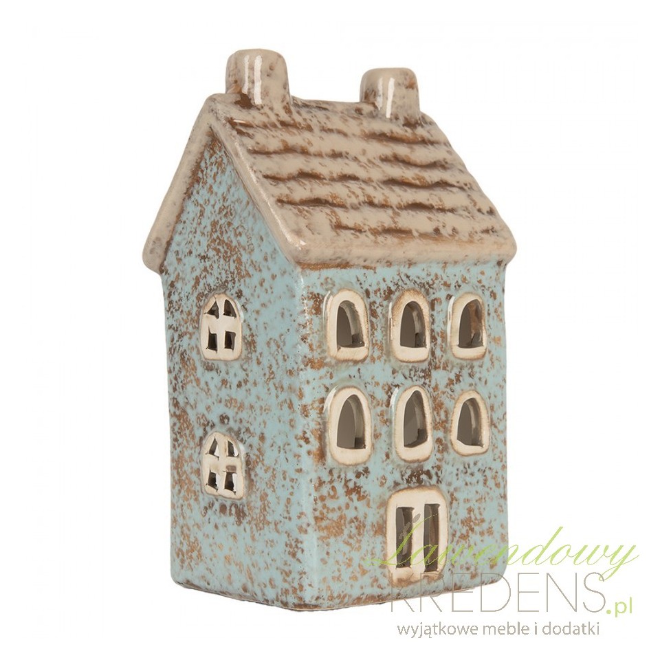 Ceramiczny domek na tealight Clayre & Eef w beżowo-niebieskich barwach to urocza dekoracja, która rozświetli wnętrze ciepłym światłem świecy. Stylizowany na rustykalny budynek, nadaje przytulny charakter i wprowadza klimat rodzinnego domu. Idealny na prezent i do tworzenia nastrojowych aranżacji.