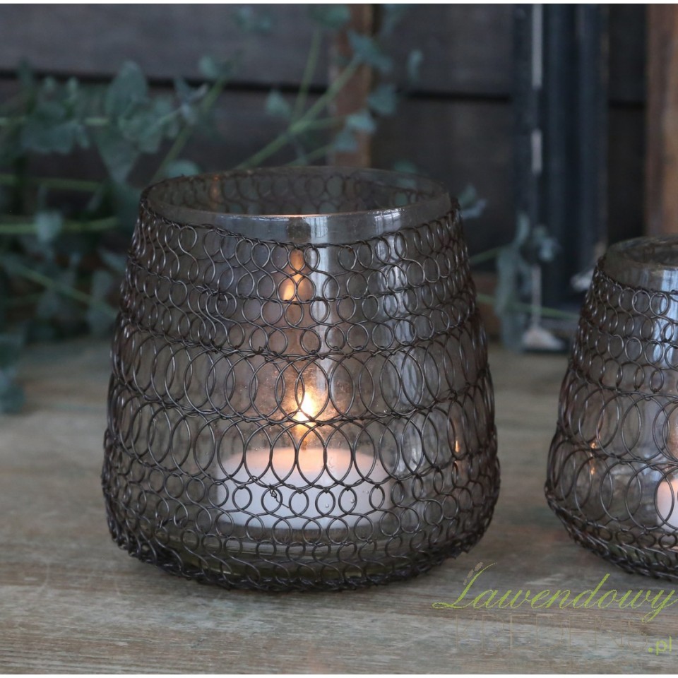 Szklany Lampion z Metalową Siatką Chic Antique A