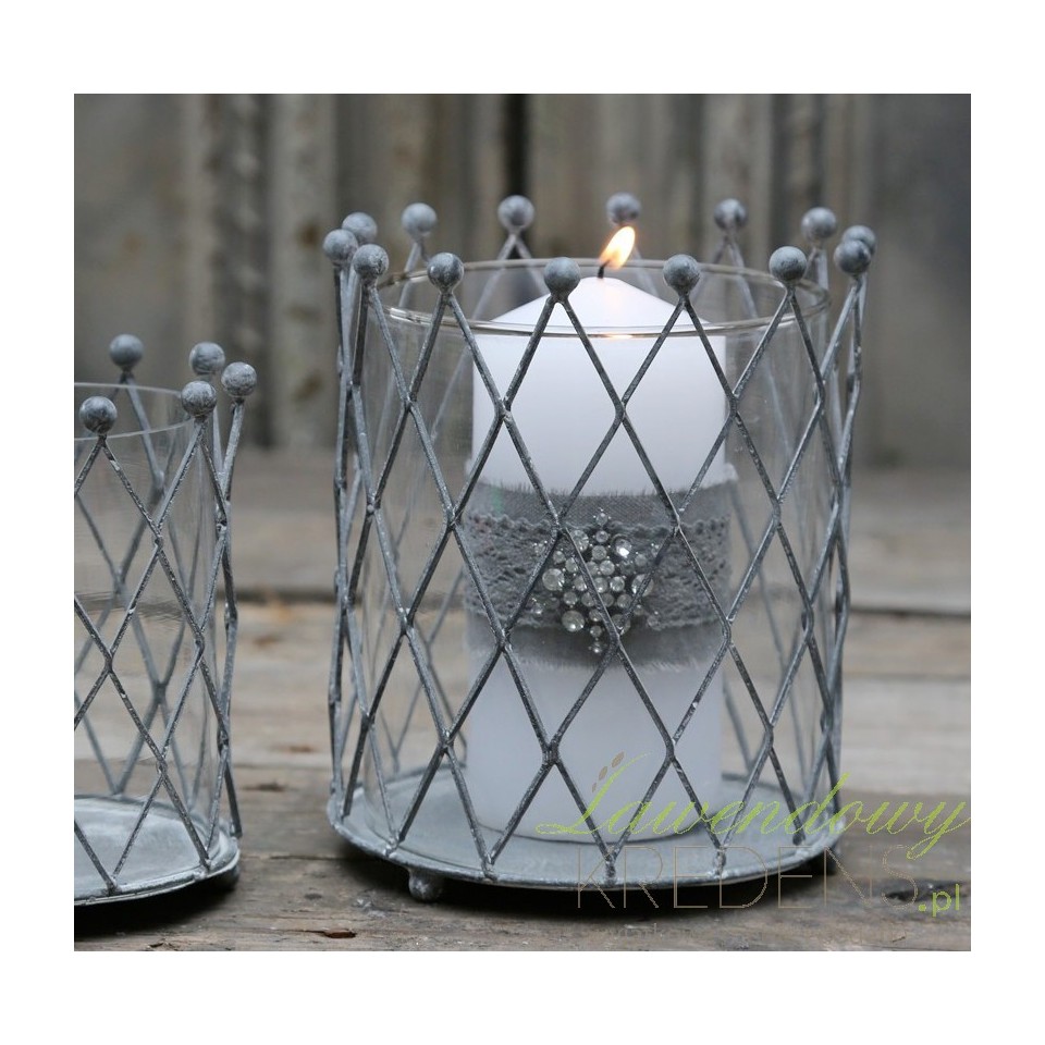 Lampion Chic Antique Romby to dekoracja, która w kilka chwil zmienia nastrój wnętrza. Przezroczyste ścianki pięknie eksponują płomień, a charakterystyczna, rombowa kratka dodaje całości vintage’owego uroku. To idealny wybór, jeśli chcesz wprowadzić