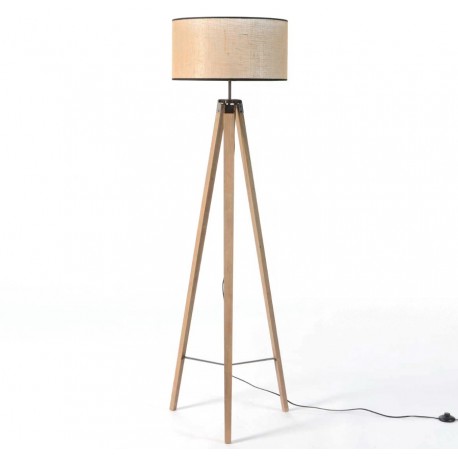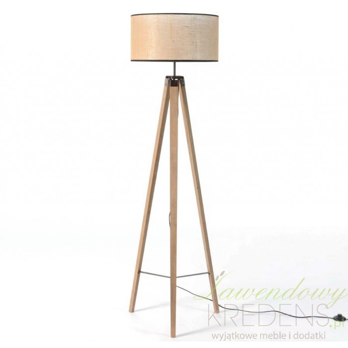 Ujmująca prostą, nieskomplikowaną budową lampa podłogowa ustawiona na drewnianym trójnogu! Rewelacja!