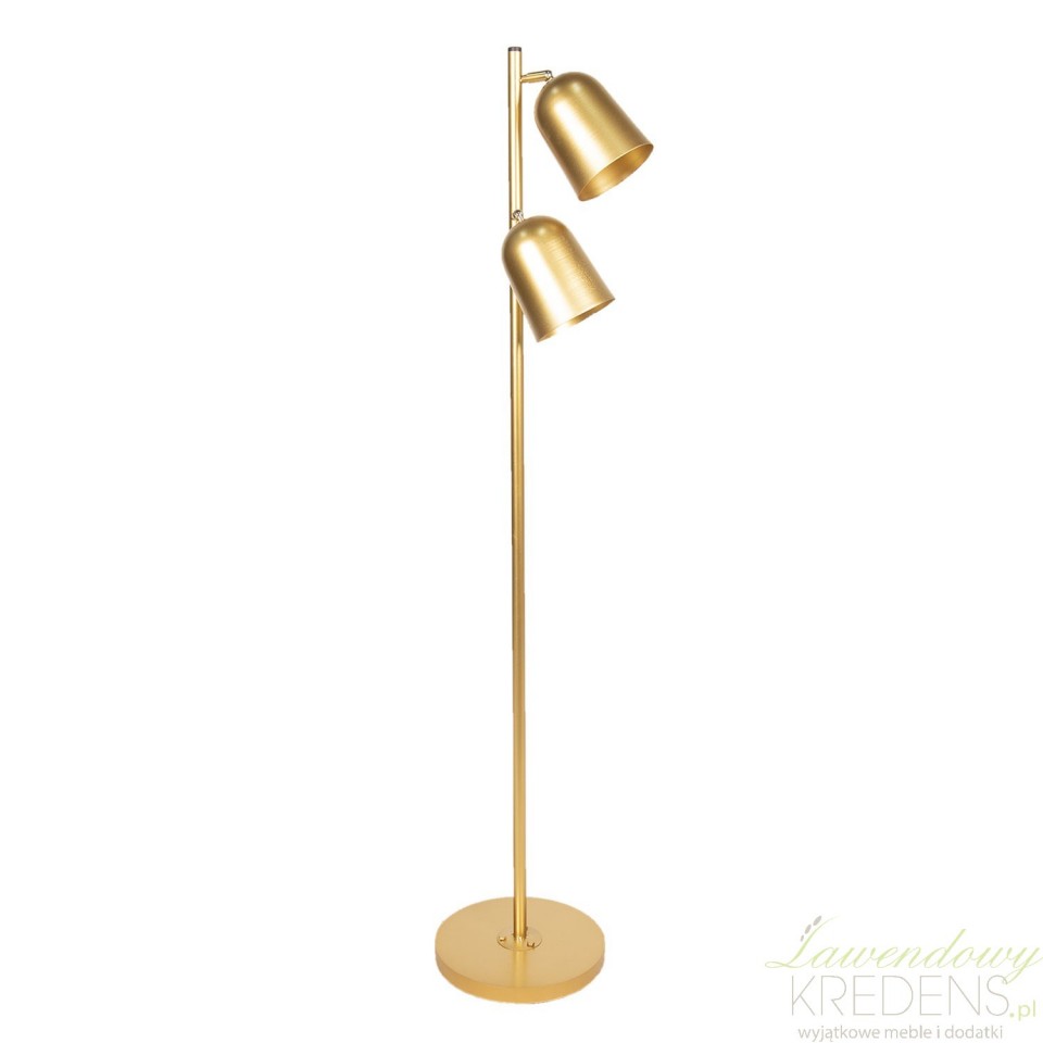 Ta podwójna lampa podłogowa pochodzi z kolekcji oświetlenia od marki Clayre&Eef. Złota lampa jest całkowicie zgodna z najnowszymi trendami aranżacyjnymi i łączy prostą formę z eleganckim kolorem. Złoto to jeden z najpiękniejszych kolorów, który nigdy nie wyjdzie z mody. Minimalistyczna konstrukcja składająca się ze smukłej nogi, okrągłej podstawy i dwóch kloszy zapewnia piękny efekt świetlny w każdym miejscu.
