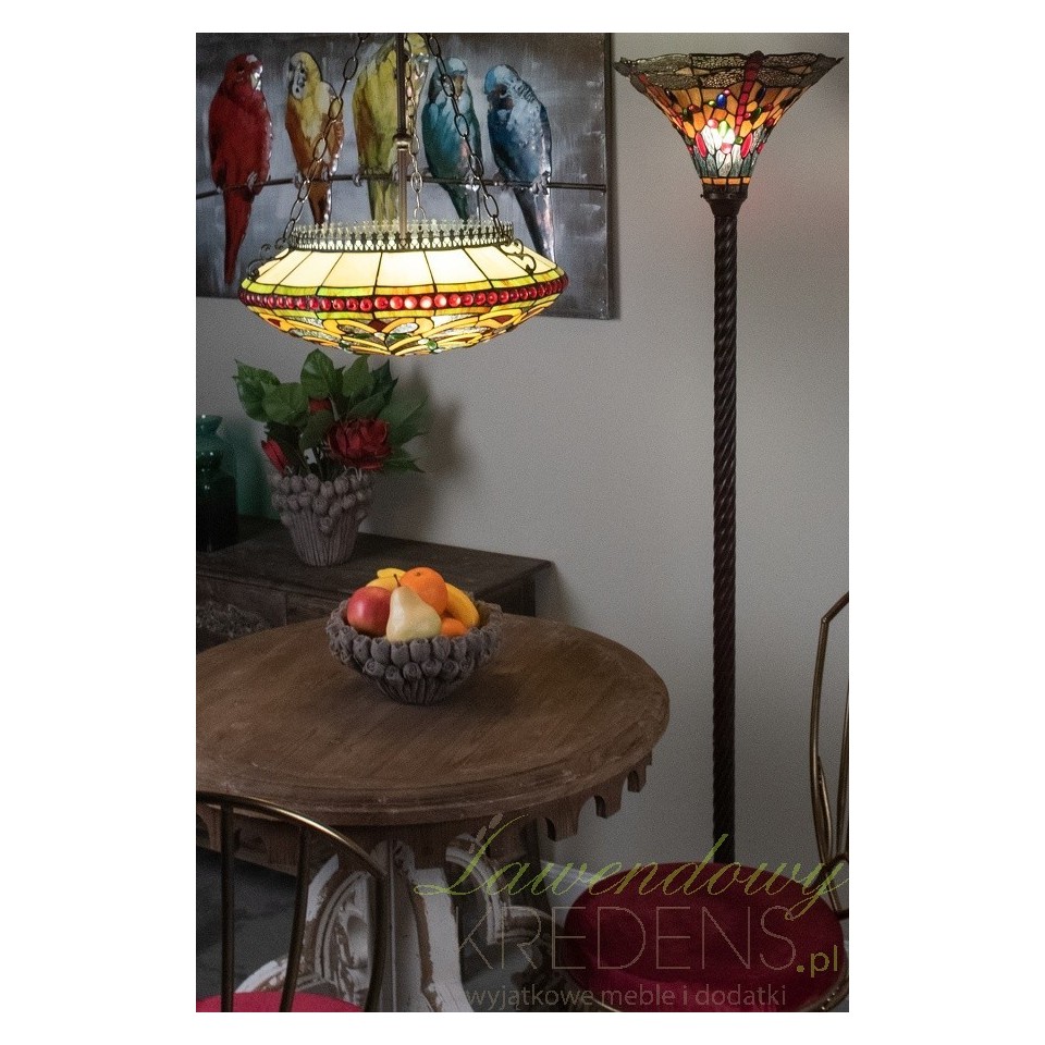 Lampy witrażowe z kolekcji Tiffany urzekają misternym wzornictwem, za którym stoją projektanci marki Clayre & Eef. Lampa Tiffany z motywem kolorowej ważki na szklanym kloszu wygląda zachwycająco. Metalowa, rzeźbiona noga i okrągła podstawa stanowią solidne i niezawodne podparcie. Lampa podłogowa, która pasuje do eleganckich wnętrz? To lampa Tiffany!