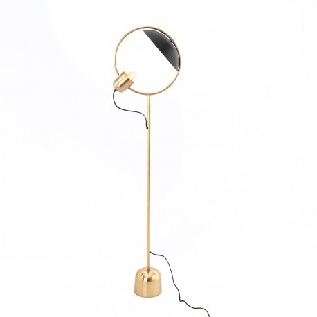 Lampa podłogowa złoto-czarna posiada efektowny klosz w kształcie pierścienia. Ten model od francuskiej marki oferuje widowiskowy i wyrafinowany sposób na oświetlenie Twojego domu.