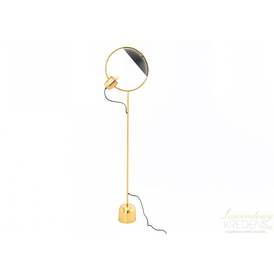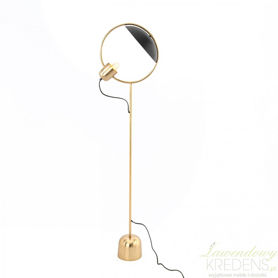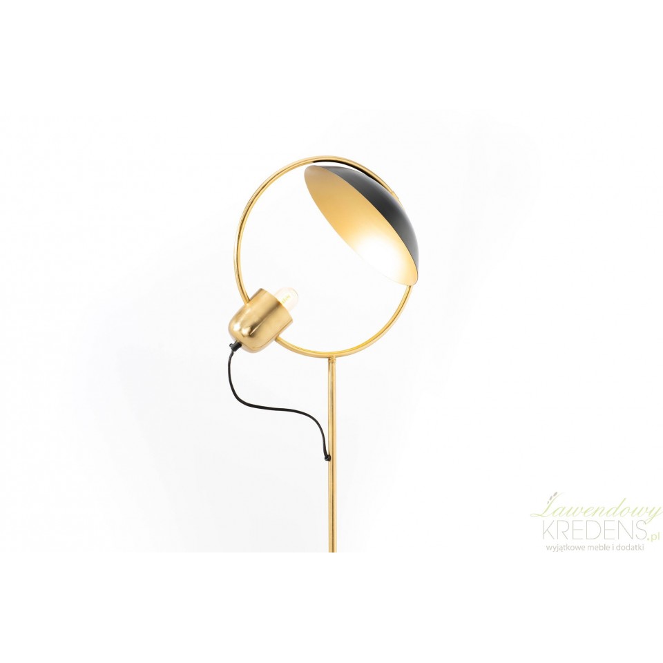 W eleganckim, złotym wykończeniu ta lampa podłogowa wykonana z metalu jest interesującym i przykuwającym uwagę źródłem światła. Podstawę lampy tworzy smukła noga w kolorze złota. Lampa podłogowa złoto-czarna z pierścieniem z miejscem na pojedynczą żarówkę uzupełniona jest czarnym kloszem z odblaskowym spodem, który dodatkowo odbija światło wydobywające się z zasilanej sieciowo żarówki. Lampy podłogowe to niezbędne dodatki do domu, a w szczególności dodatki do pokoju zaaranżowanego w stylu glamour, eleganckim lub industrialnym.