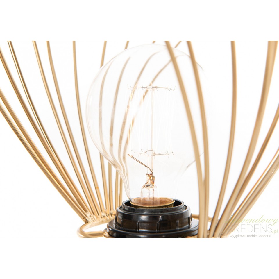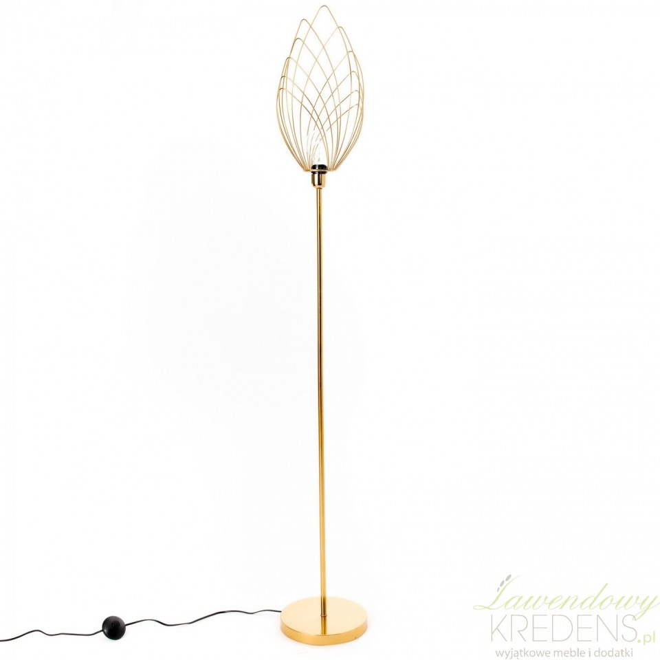 Dodatki do domu, których nie sposób pominąć oglądając ofertę naszego sklepu to miedzy innymi złote lampy podłogowe. Prezentowana lampa posiada starannie wykonany z metalowych prętów klosz, który rozprasza światło żarówki w geometrycznych cieniach, nadając pomieszczeniu marzycielski nastrój. Zachowaj skoordynowany styl wnętrza dzięki eleganckiej, złotej lampie, która płynnie komponuje się z większością motywów aranżacyjnych i elementów dekoracyjnych. Jesteśmy przekonani, że dodatki do pokoju takie jak złota lampa podłogowa nadadzą każdemu pomieszczeniu ciepły i przyjemny blask.