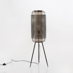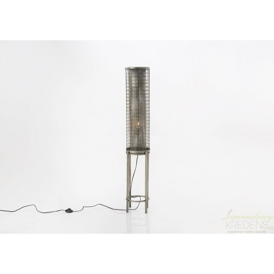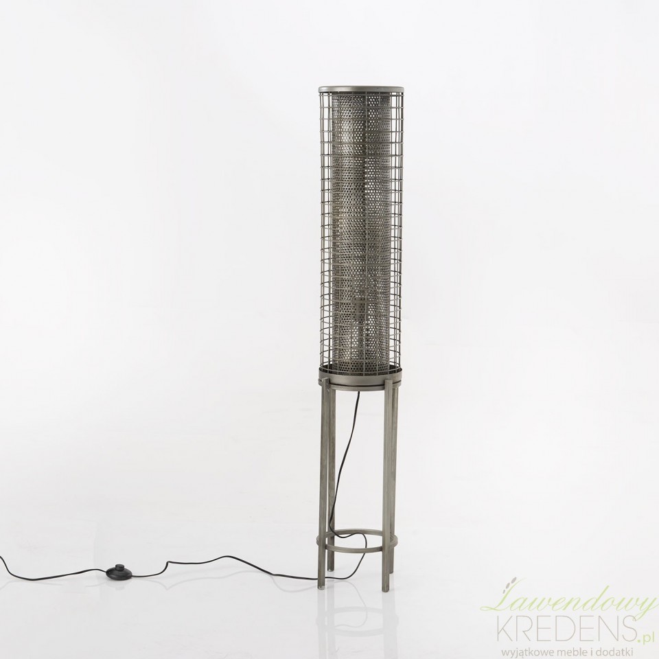 Ta lampa podłogowa industrialna została zaprojektowana w szarym wykończeniu i zbudowana z metalowych elementów ażurowych oraz z metalowej kratki. Pomysłowy, walcowaty kształt to jej element charakterystyczny, perfekcyjnie odpowiadający industrialnym trendom. Lampy podłogowe industrialne to jedyne takie dodatki w stylu industrialnym, które za dnia stanowią ciekawą dekorację, a po zmroku są niezastąpionym źródłem światła. Dodatki do pokoju to kategoria, w której znajdziesz wiele wielofunkcyjnych elementów wyposażenia wnętrza.