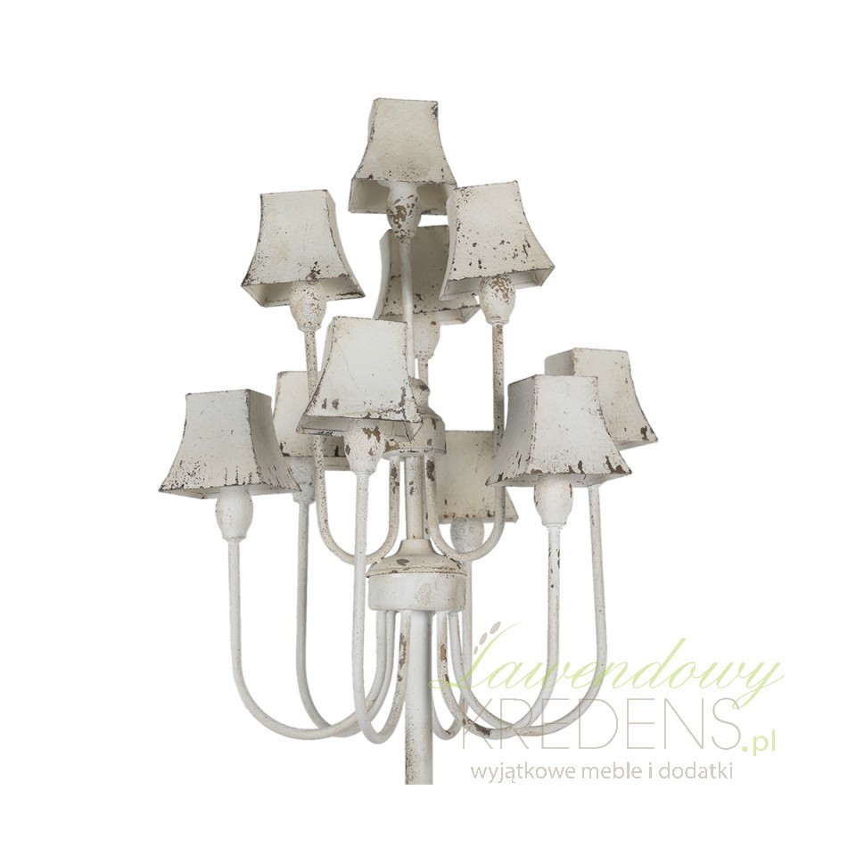 Wysoka lampa podłogowa prowansalska posiada wykończenie w kolorze antycznego kremu, które nadaje jej królewskiego wdzięku. Estetykę lampy w stylu prowansalskim dopełniają przepiękne klosze metalowe osadzone na ugiętych ramionach. Z pewnością stanie się główną ozdobą Twojego domu. Starodawny, eteryczny urok jaki cechuje prowansalskie lampy to wizytówka holenderskiej marki Clayre & Eef. To właśnie w ofercie tej marki czekają na Ciebie oryginalne i doskonałej jakości lampy prowansalskie podłogowe.