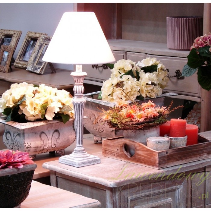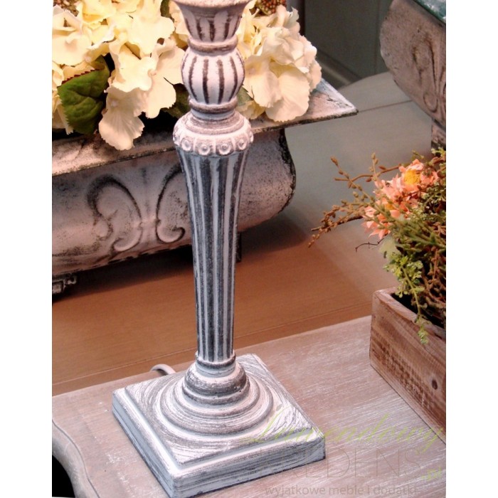 Salonowe lampy w stylu prowansalskim, których główną zaletą są intensywne światło i bardzo elegancka, ciekawie prezentująca się podstawa w kolorze szarym z wyrazistymi akcentami bielenia, które tworzą na powierzchni bajkowy wręcz efekt wizualny. Daj się uwieść!
