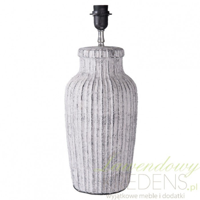 Ceramiczna lampa stołowa to dostojna noga o lekkim wybrzuszeniu. Prążkowana struktura i bielenia na niej wykonane sa gwarancją modnie urządzonego wnętrza.
