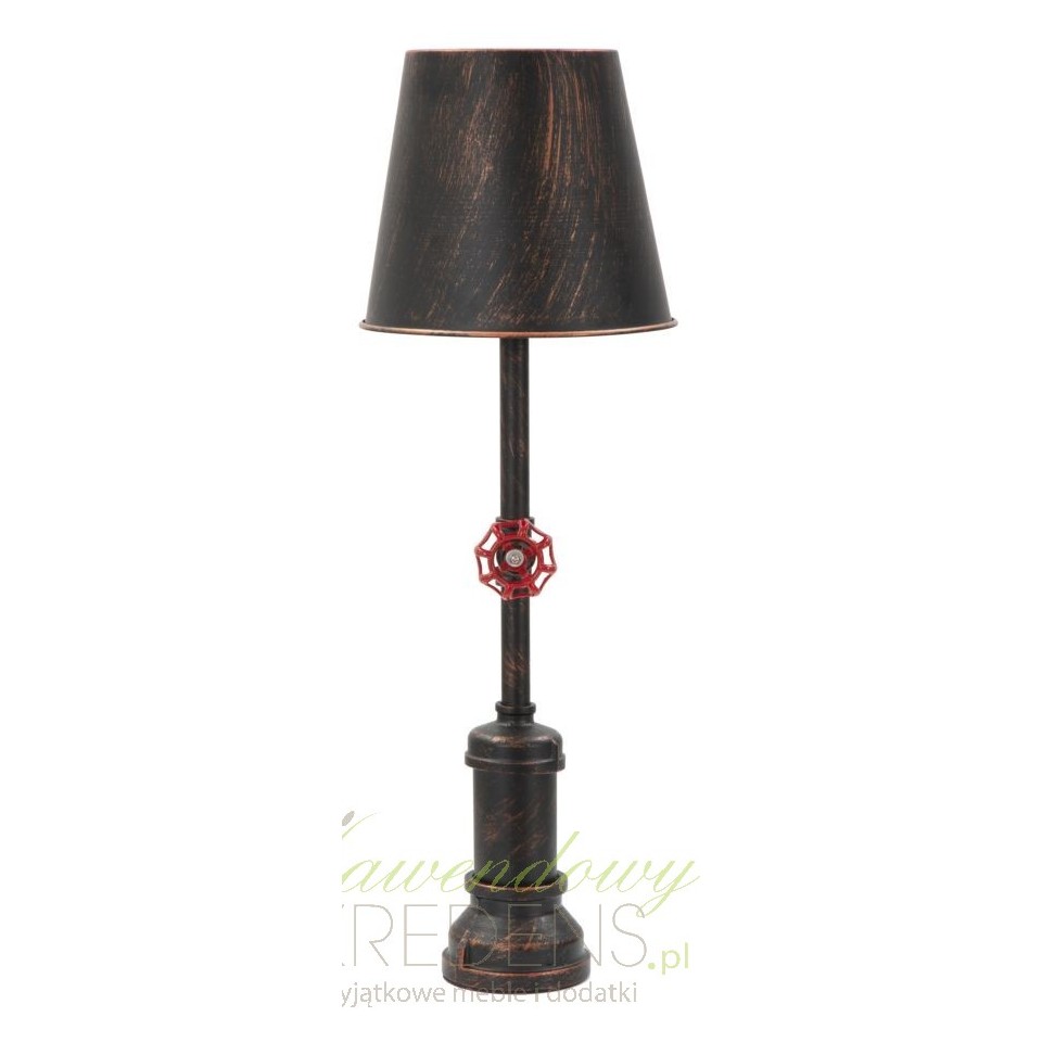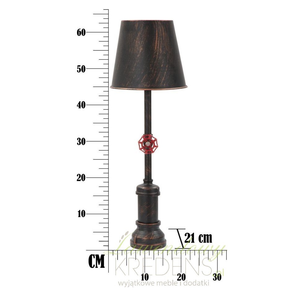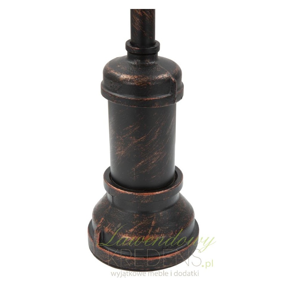 Wysoka lampa stołowa w stylu industrialnym z miedzianymi przecierkami to model, który najlepiej sprawdzi się na komodzie, na stoliku nocnym jako lampka nocna i na biurku.