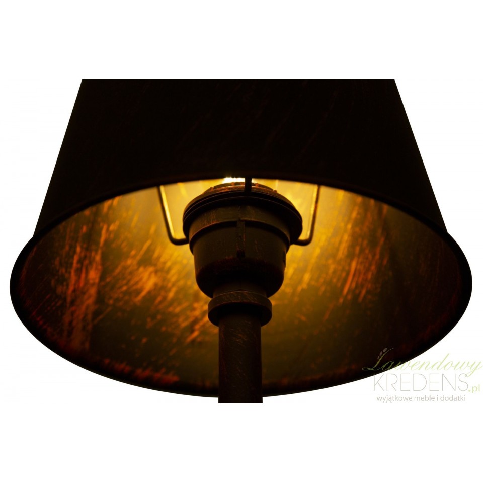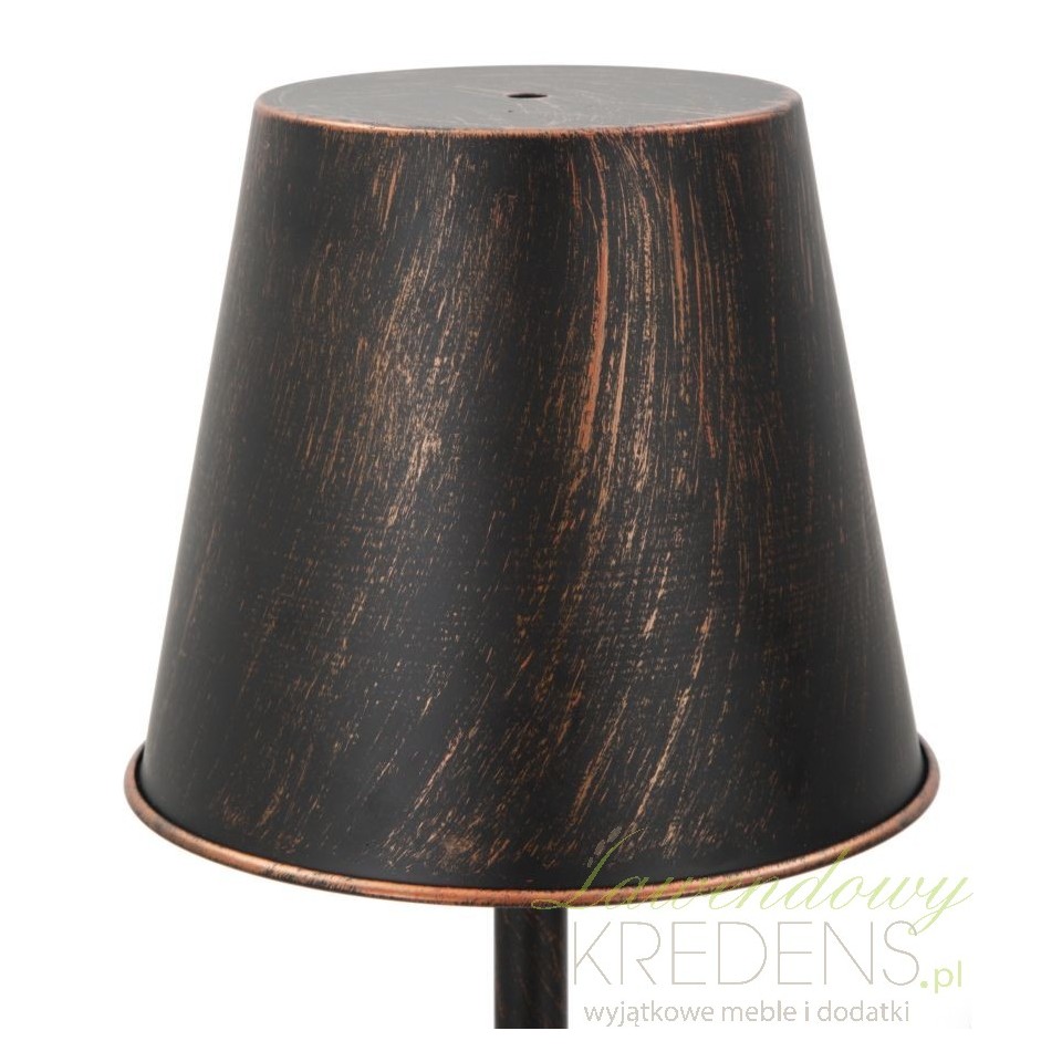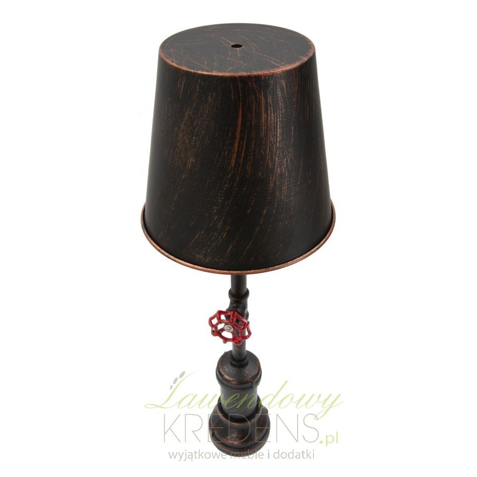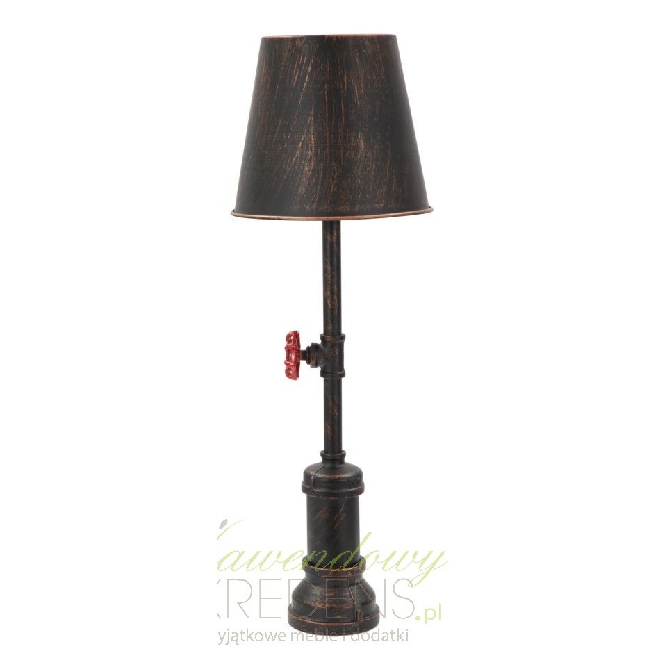 Wysoka lampa stołowa w stylu industrialnym z miedzianymi przecierkami to model, który najlepiej sprawdzi się na komodzie, na stoliku nocnym jako lampka nocna i na biurku.