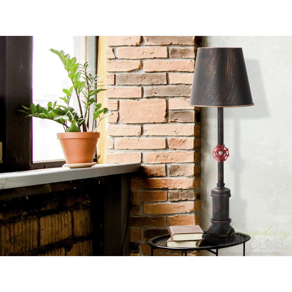 Lampa w stylu industrialnym Manhatta ma 64 centymetry wysokości, wykonana została z metalu, co przekłada się na jej solidność, trwałość i satysfakcję naszych klientów. Lampa stołowa, dzięki masywnej podstawie jest odpowiednia nie tylko na komodę w salonie ale również na biurko w gabinecie. To element oświetlenia zainspirowany XIX-wiecznym wzornictwem, o czym świadczą również miedziane przecierki na abażurze. Lampa posiada element dekoracyjny w formie czerwonego pokrętła.