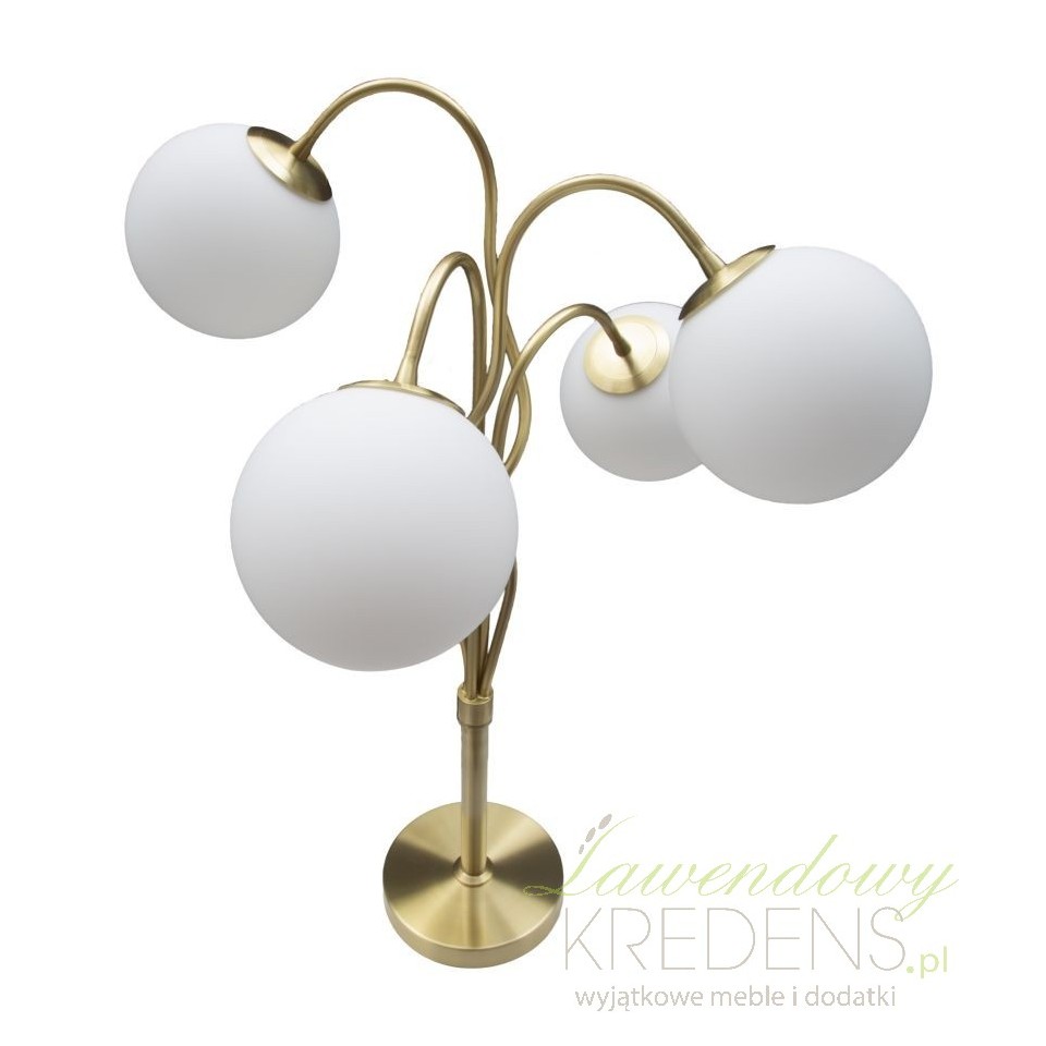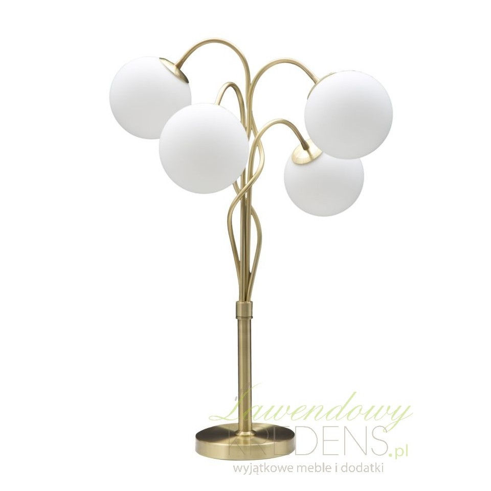 Złota lampa stołowa z kulami, w których skrywają się żarówki to sposób marki Mauro Ferretti na zapewnienie wnętrzom blasku, szyku i odrobiny luksusu.