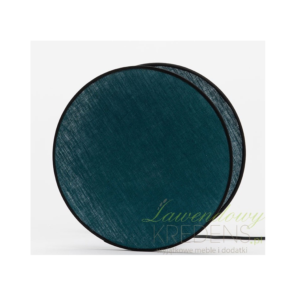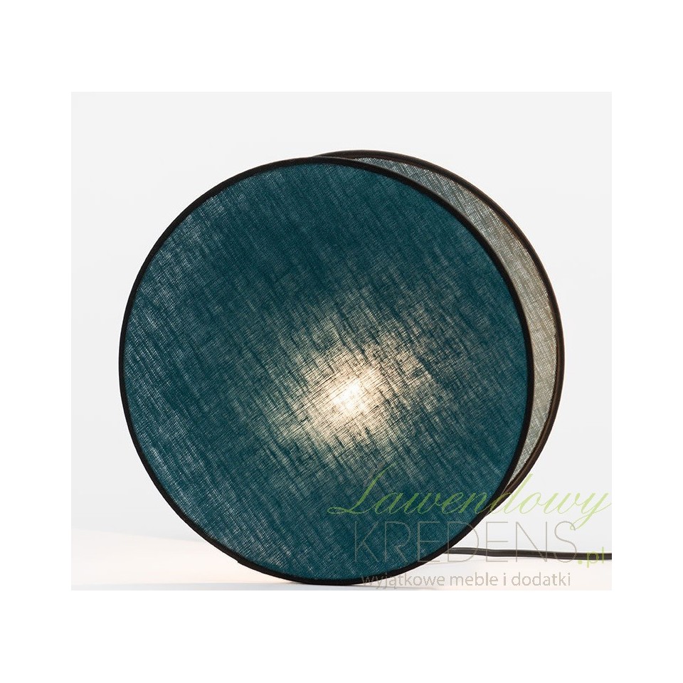Dodatki do domu, które są niezastąpione to miedzy innymi elementy oświetlenia wnętrza. Prezentowana lampka nocna w kolorze morskim jest okrągła, wykonana z lnianej tkaniny i oprawiona czarną lamówką. Pięknie komponuje się z skandynawskimi i industrialnymi meblami. Zamów swoją ulubioną lampkę już teraz!