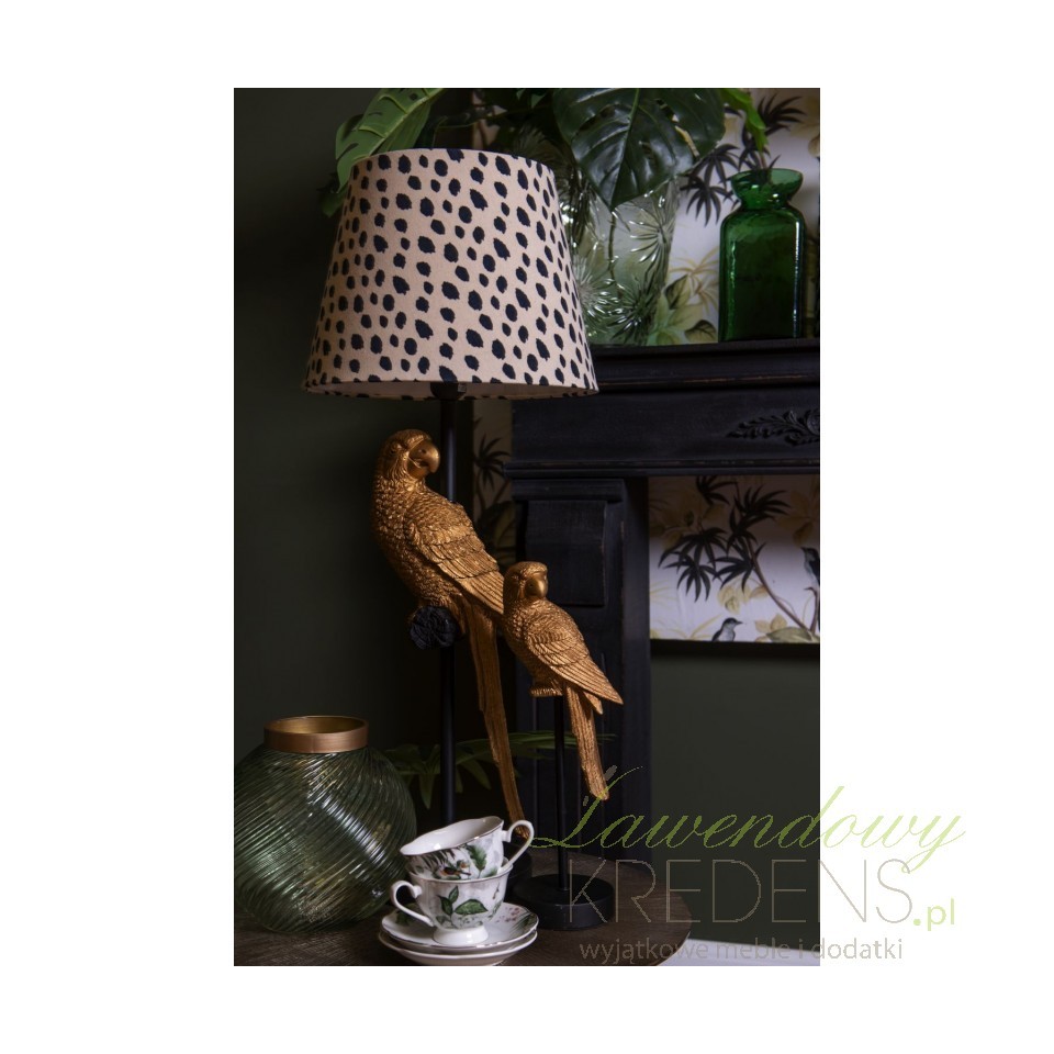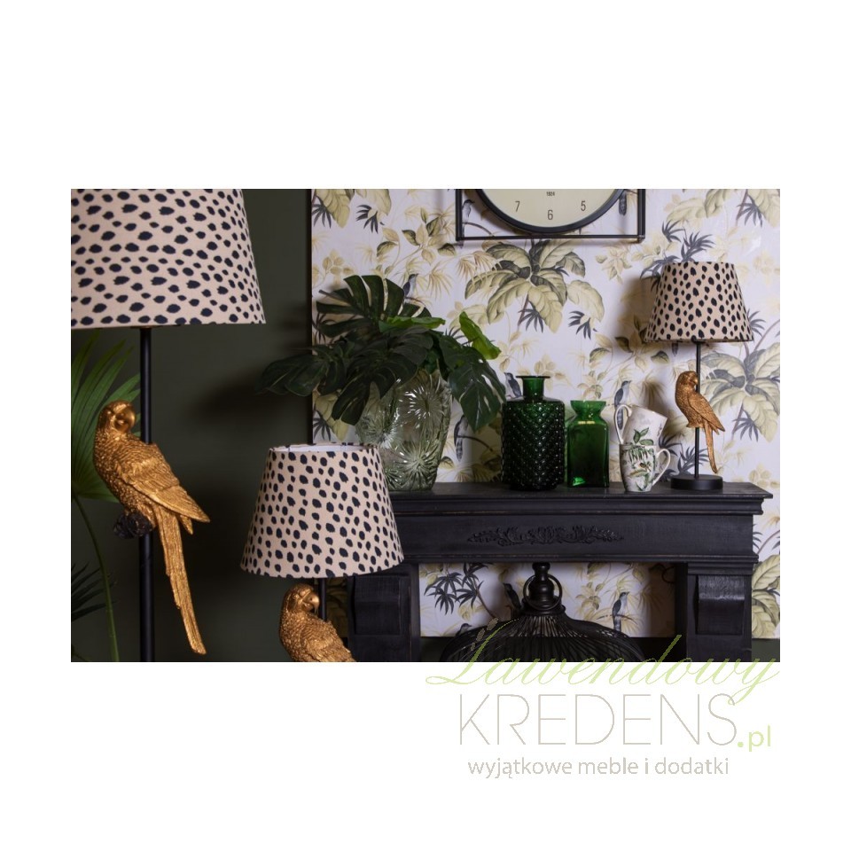 Lampy stołowe z figurkami zwierząt to sposób nie tylko na oświetlenie wnętrza, ale również na ciekawą dekorację. W tej ofercie - lampa z papugą!