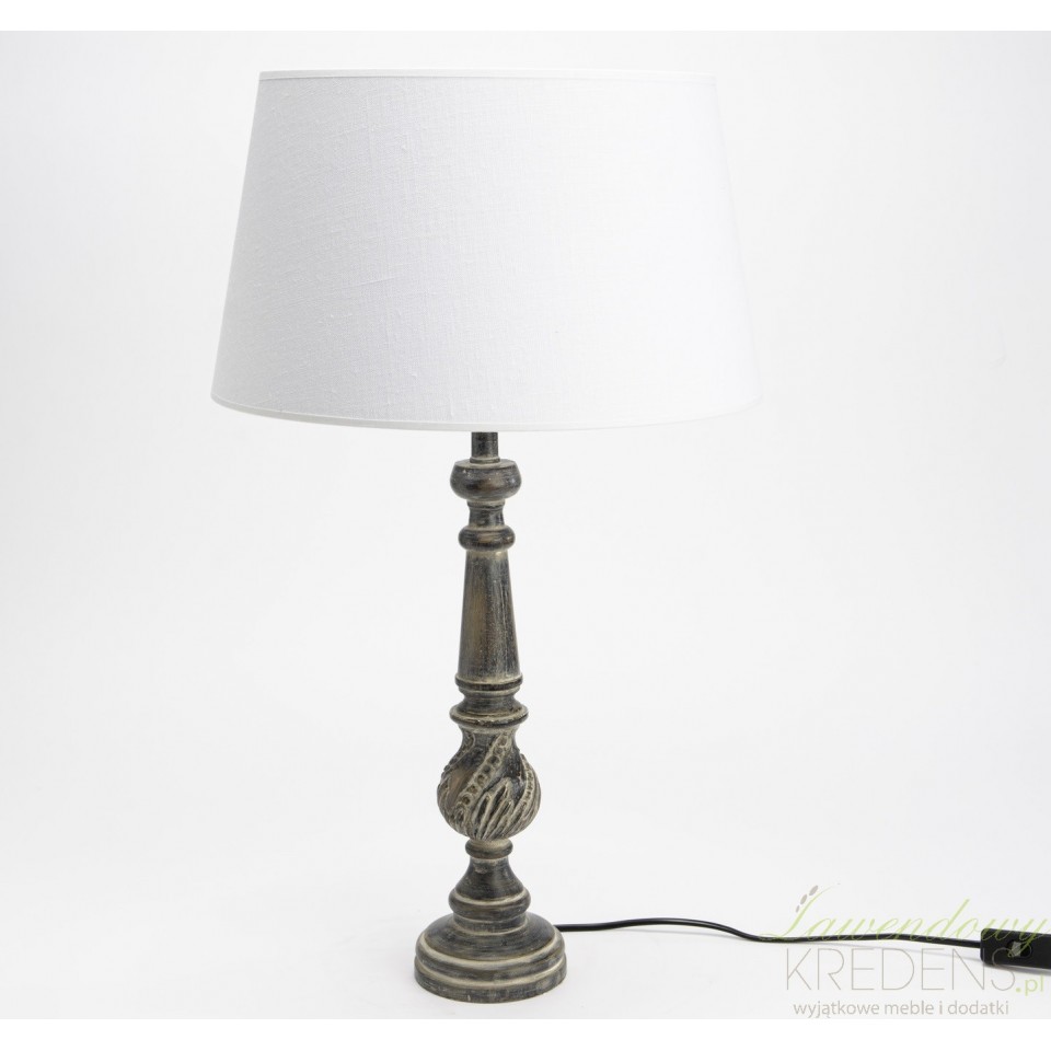 Przed Państwem klasyczna lampka stołowa, która oświetlić może biurko, stolik nocny lub komodę. Jej pełne wdzięku zdobienia i bielone detale naniesione na drewnianej nodze zostały zaprojektowane z myślą o osobach, które lubią wyszukany styl. Lampa stołowa w stylu prowansalskim posiada biały abażur uszyty z lnu. Lampy w stylu prowansalskim wniosą odrobinę wyrafinowanego luksusu do dowolnej przestrzeni.