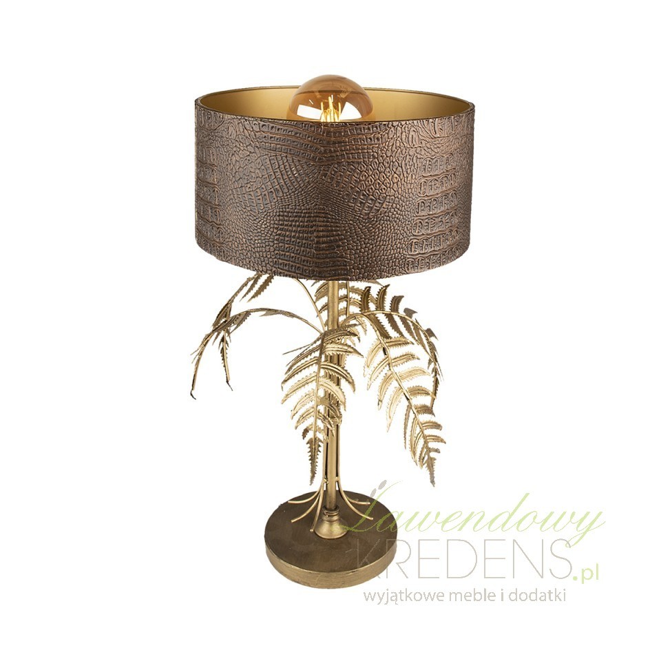 Oświetlenie punktowe nie musi być nudne! Nasza lampa stołowa liście Clayre & Eef jest wykonana z metalu z wykończeniem w stylu vintage, barwiona na ciemny kolor mosiądzu. Ta stylowa lampka ma wysokość 53 cm i klosz o średnicy 30 cm. Kabel pokryty z wbudowanym, czarnym przełącznikiem zapewnia wygodę użytkowania. Elementem przyciągającym uwagę są dekoracyjne liście palmy zdobiące nóżkę. Takie lampy w stylu skandynawskim czekają na Ciebie w naszym sklepie online i dostępne są z darmową dostawą!
