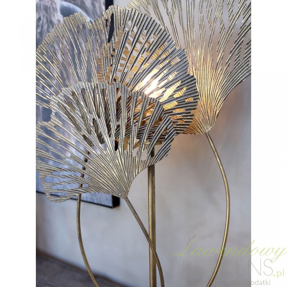 Metalowa lampa liście została zaprojektowana z myślą o niebanalnych wnętrzach. Żarówkę otaczają przepiękne, rozłożyste liście ażurowe w kolorze antycznego mosiądzu. Wizualnie to wykończenie nadaje lampie bardzo naturalny wygląd. Lampę Chic Antique polecamy wykorzystać do nadania salonowi romantycznego lub boho charakteru. To zjawiskowe oświetlenie, które tworzy imponującą grę światła i cienia. Prezentowana lampa stołowa jest dostępna w naszym sklepie w dwóch różnych rozmiarach.
