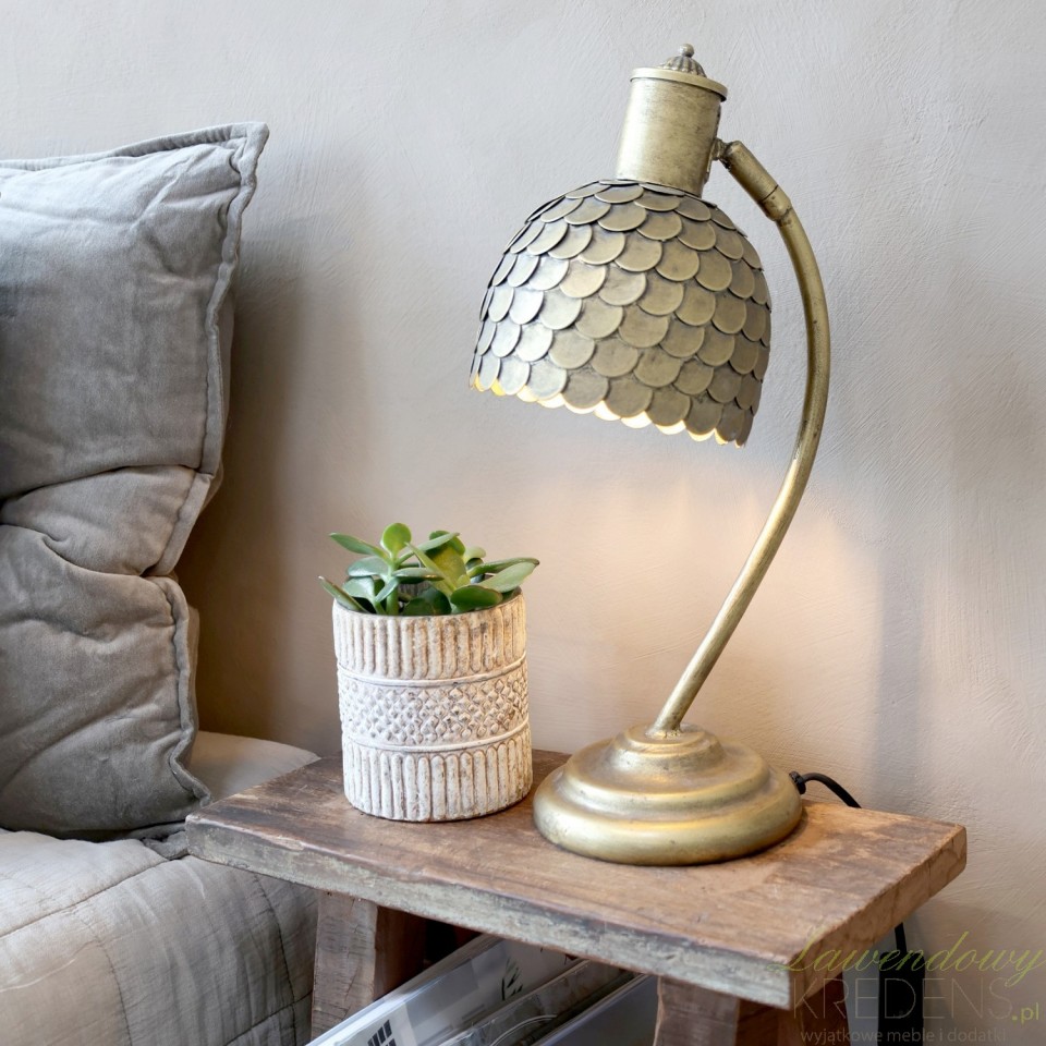 Prezentowana lampka stołowa w stylu skandynawskim Chic Antique Łuski pomoże w aranżacji spokojnego i stylowego wnętrza.