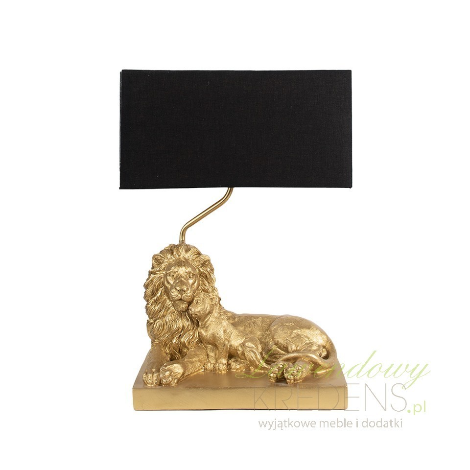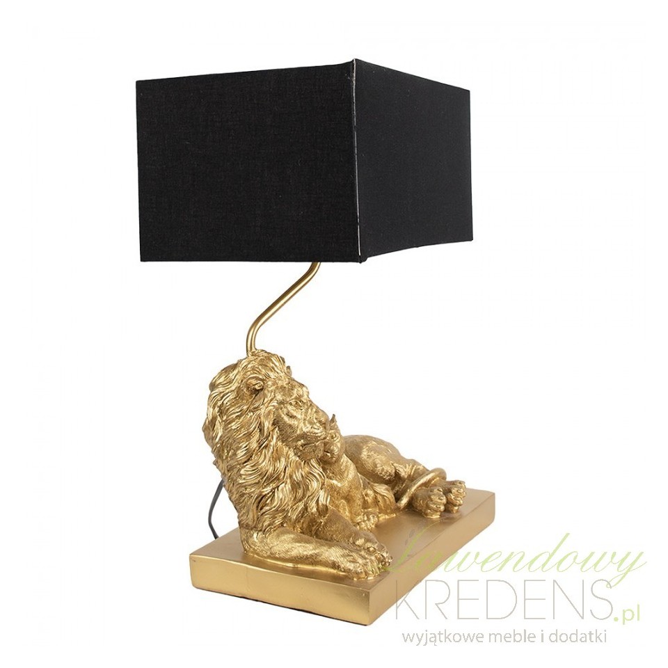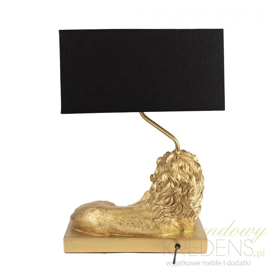 Podstawa lampy została starannie ozdobiona figurką lwa, symbolizującego siłę, władzę i majestat. Wykonana z wysokiej jakości materiałów, podstawa w złotym kolorze emanuje blaskiem i dodaje elegancji całej lampie. To wyjątkowe detale sprawiają, że lampa zyskuje wyrazisty charakter i staje się nie tylko źródłem światła, ale również artystyczną dekoracją. Klosz lampy w kształcie prostokąta, jest wykonany z czarnego materiału, który okrasza ją odrobiną tajemniczości i elegancji. Ten minimalistyczny design w połączeniu z wyrazistym kolorem kontrastuje z błyszczącym złotem podstawy, tworząc efektowny i stylowy wygląd. Nasza duża lampa stołowa złota Lew nie tylko wzbogaci Twoje wnętrze o doskonałe oświetlenie, ale również stanie się znaczącym elementem dekoracyjnym. Jej obecność doda pomieszczeniu niepowtarzalnego uroku, wprowadzając wyjątkową atmosferę i wibrującą energię. Wybierz duże lampy stołowe, aby dodać do swojej przestrzeni wyjątkowego uroku, luksusu i stylu. Niezależnie od tego, czy używasz ich w salonie, sypialni, biurze czy innym pomieszczeniu, wzbudzą podziw i zachwyt gości oraz staną się niezapomnianym elementem Twojego wystroju wnętrz.