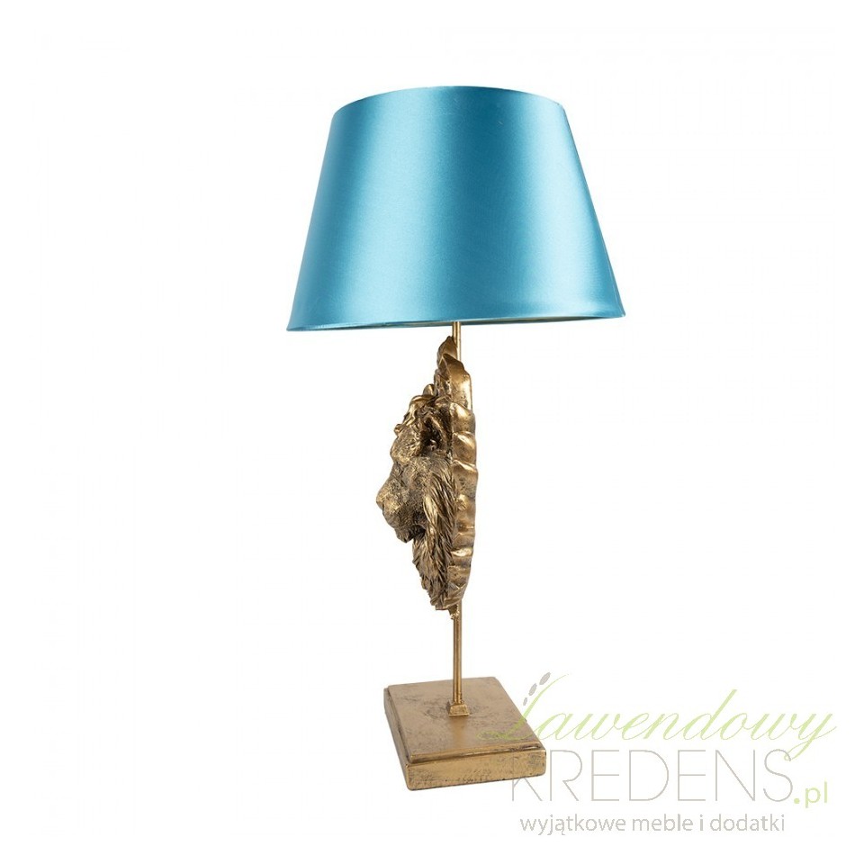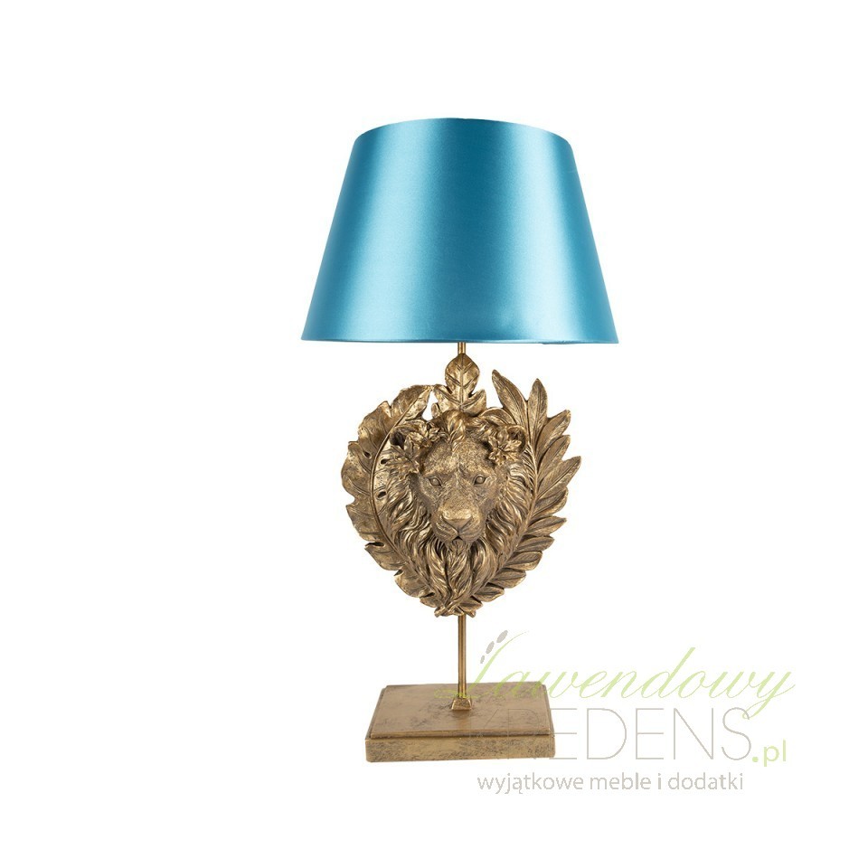 Podstawę lampy wykonano z solidnego materiału w kolorze mosiądzu, który nadaje jej nie tylko wyjątkowej trwałości, ale także stylowego wyglądu. Jednak to nie wszystko. Noga lampy ozdobiona jest wizerunkiem lwa - symbolu siły, władzy i majestatu. Figurka lwa dodaje lampie wyrazistego charakteru i elegancji, sprawiając, że staje się ona prawdziwym dziełem sztuki. Klosz w kolorze niebieskim, dodaje całości subtelnej magii. Ten wyjątkowy odcień niebieskiego tworzy przyjemną i relaksującą atmosferę, rozpromieniając wokół siebie delikatne, kojące światło. Idealnie nadaje się do tworzenia przytulnej atmosfery podczas wieczornego relaksu lub czytania ulubionej lektury. Nasza duża lampa stołowa nie tylko jest funkcjonalnym źródłem światła, ale także pełni rolę dekoracyjną. Jej imponujący design przyciąga uwagę i dodaje wyjątkowego uroku każdemu pomieszczeniu, czy to w domu, biurze czy innym miejscu. Wybierz duże lampy stołowe od Clayre & Eef, aby dodać do swojej przestrzeni elegancji, stylu i unikalności. Będzie to nie tylko doskonałe oświetlenie, ale również fascynujący element wystroju, który zachwyci każdego, kto je zobaczy.