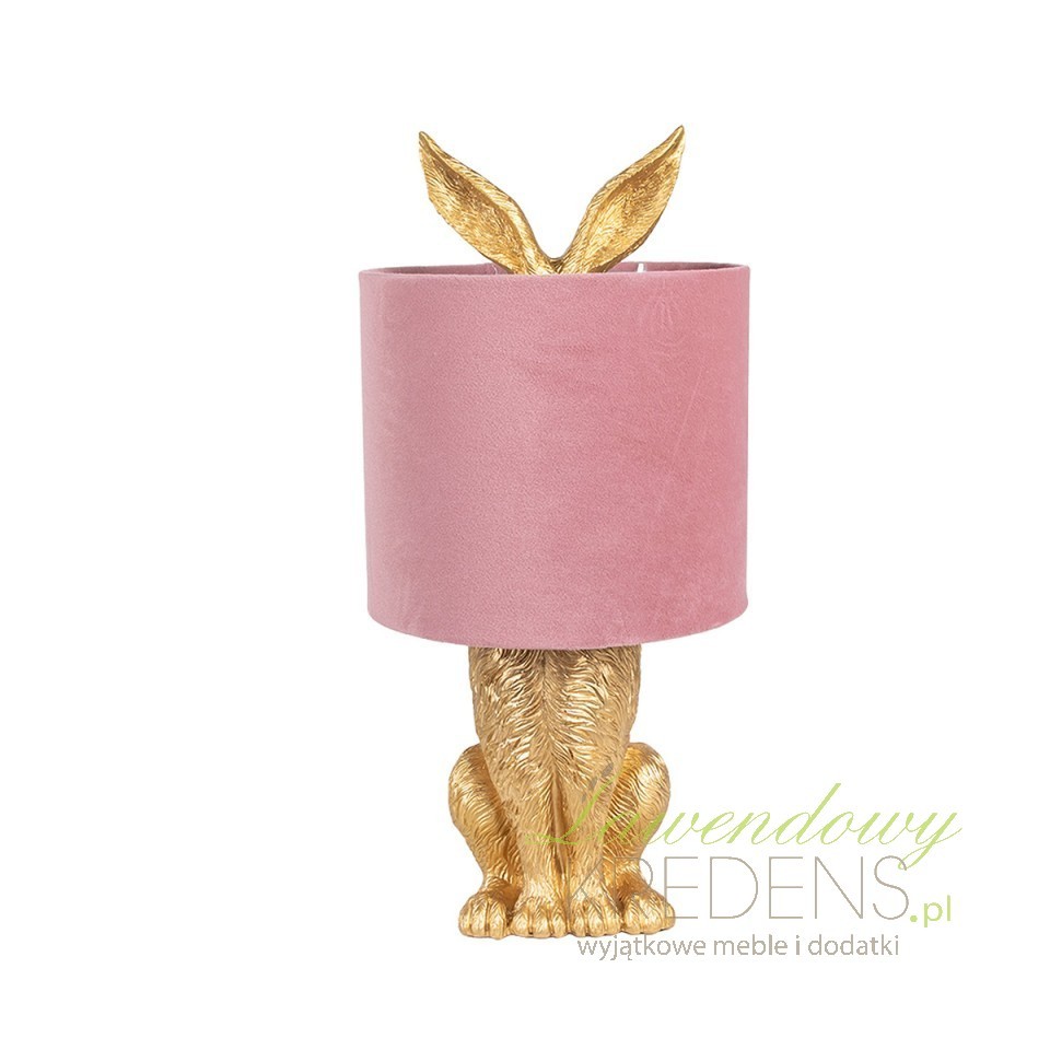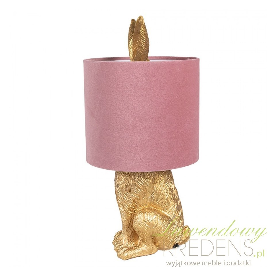 Złota lampa stołowa z podstawą w kształcie zajączka i różowym abażurem to subtelne połączenie elegancji i delikatności. Ten wyjątkowy dodatek doskonale sprawdzi się w romantycznych lub pastelowych aranżacjach wnętrz.