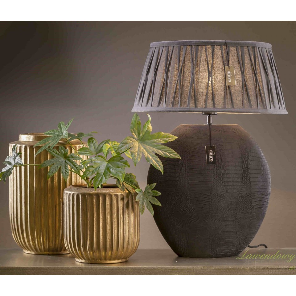 Szukasz oświetlenia, które doda wnętrzu klasy, a przy tym nie zginie wizualnie na dużej komodzie lub konsoli? Lampa Stołowa Aluro Lenox XL rozwiązuje ten problem dzięki masywnej, szerokiej podstawie i wyrazistej fakturze inspirowanej skórą krokodyla. Polecam ją, gdy chcesz zbudować nastrój w salonie, sypialni albo gabinecie bez wymiany całej aranżacji: jedna mocna bryła potrafi „spiąć” dodatki i nadać przestrzeni bardziej luksusowy, hotelowy charakter. Ciemne wybarwienie dobrze współgra z drewnem, beżami, kamieniem, a także z industrialnym metalem.Teksturowana podstawa XL do salonu i sypialni – stabilność i mocny akcent