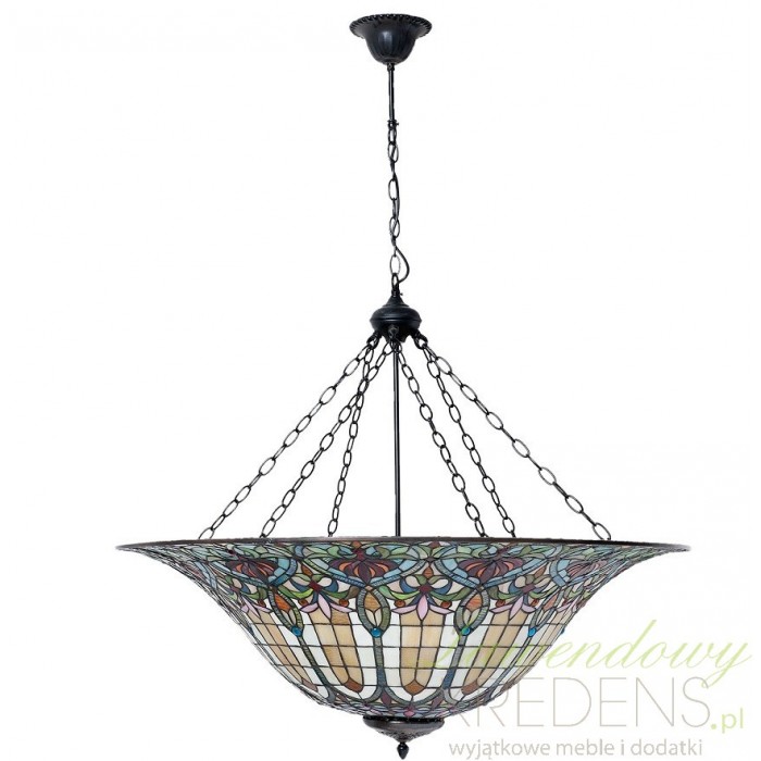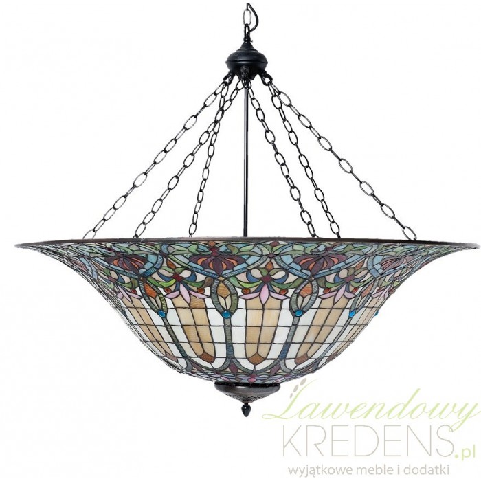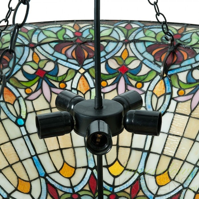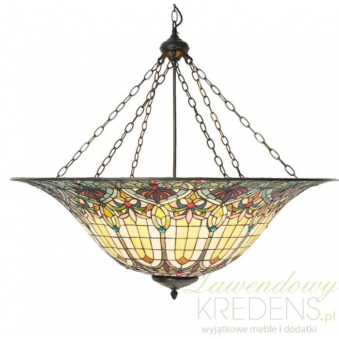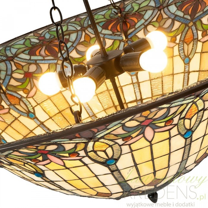 Przepiękna, kolorowa sufitowa lampa Tiffany na sześciu łańcuchach w bardzo dekoracyjny wzór!