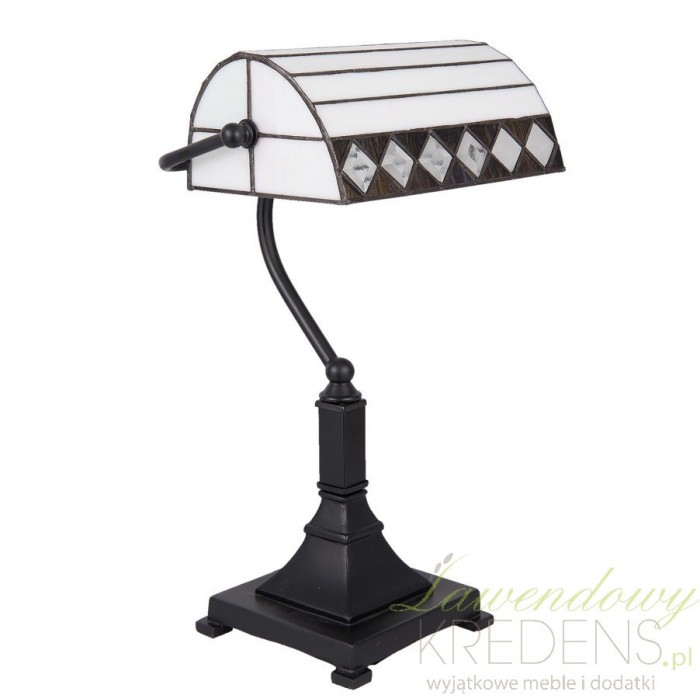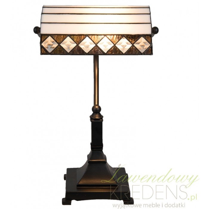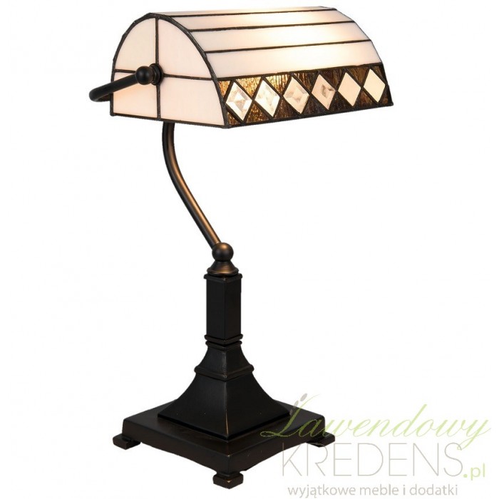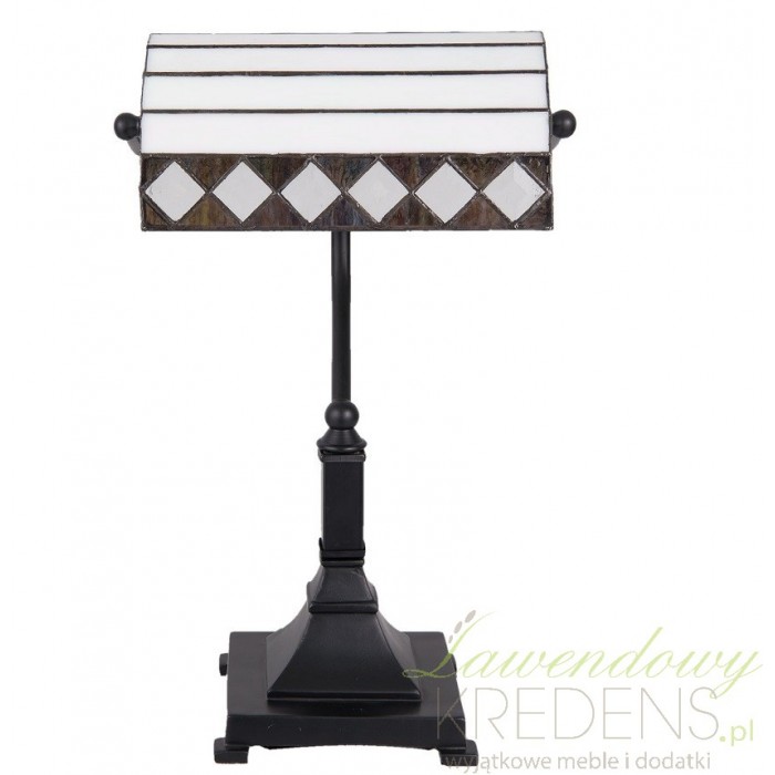 Lampa witrażowa firmy Clayre & Eef wykonana jest z wysokiej jakości szkła i polirezynu. Lampa Tiffany ma półokrągły kształt i stoi na solidnej nodze o kwadratowej podstawie. Lampa stołowa ma urocze poziome jasne pasy i romby po bokach. Lampy witrażowe są doskonałe do budynków użyteczności publicznej i nie tylko.